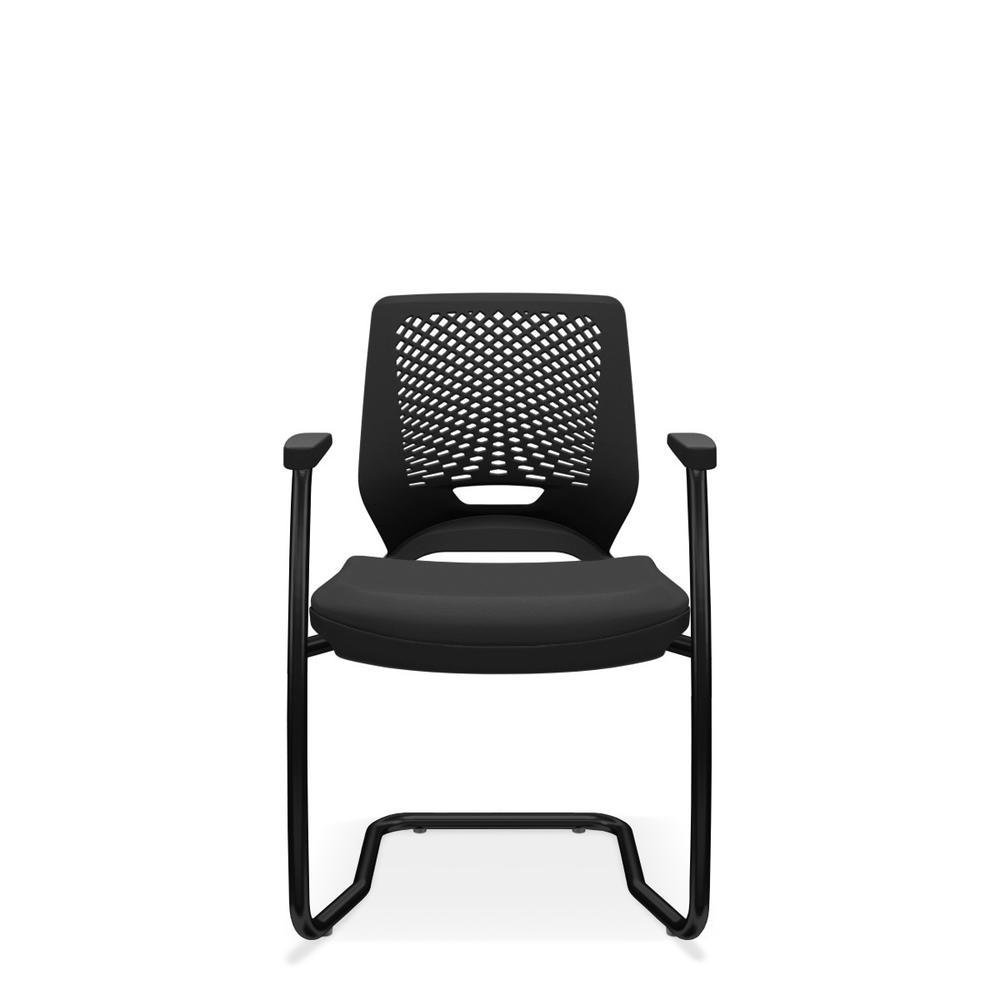 A cadeira de escritório beezi é uma cadeira que une praticidade e design arrojado. Seu estilo contemporâneo adequa-se aos ambientes arrojados, transmitindo modernidade e acrescentando requinte. Seus diferenciais estão no encosto em termoplástico que busca proporcionar conforto ao usuário. Cadeira com braços e estrutura em s preta.