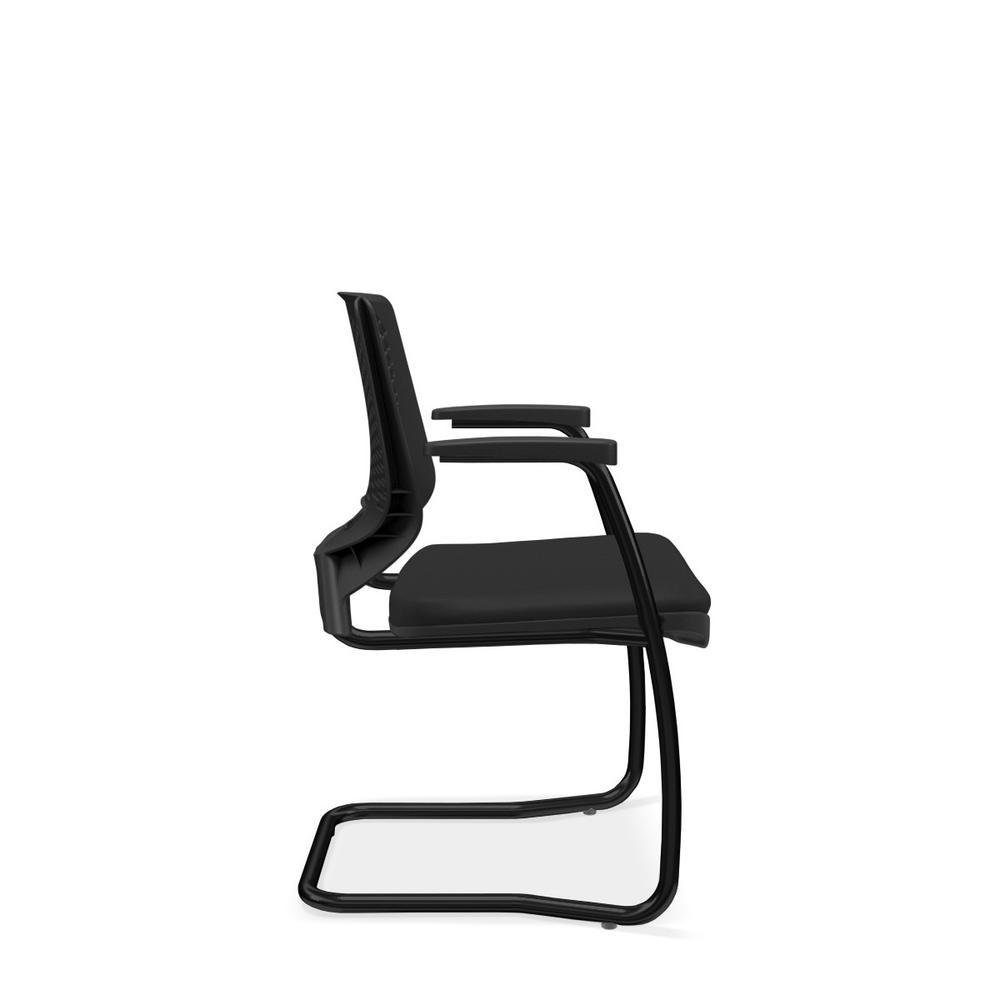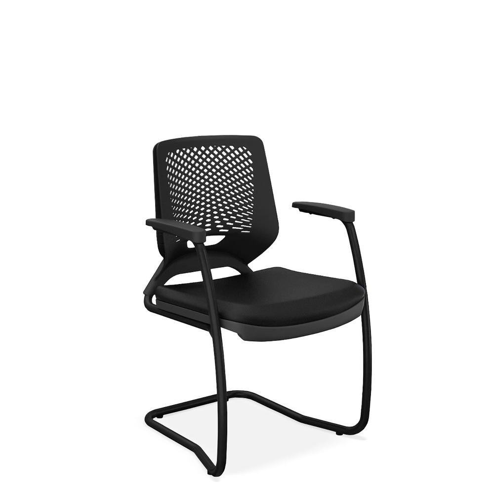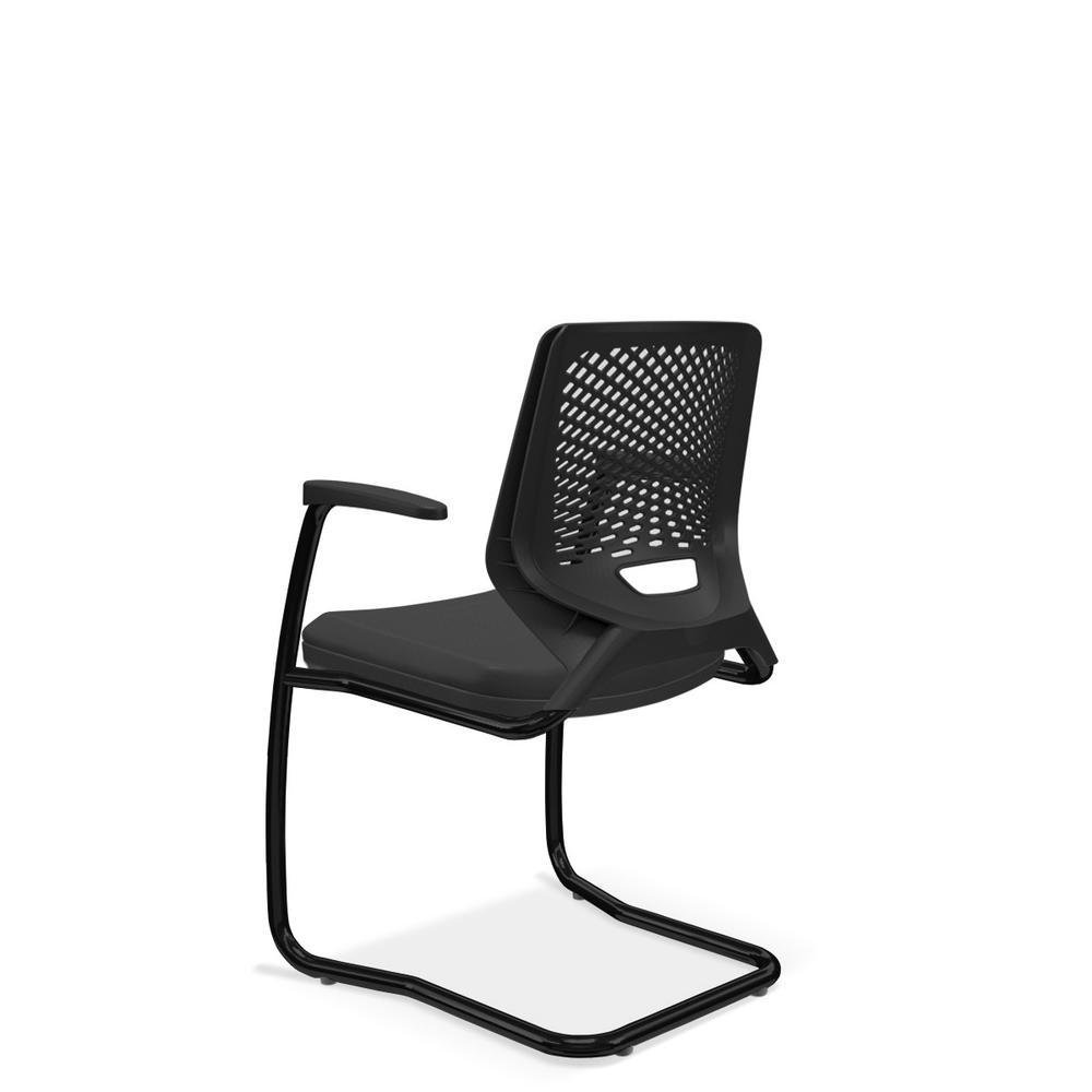 Cadeira Office Plaxmetal Fixa, Aproximação Beezi, Base Preta Em S, Com Braços, Couro