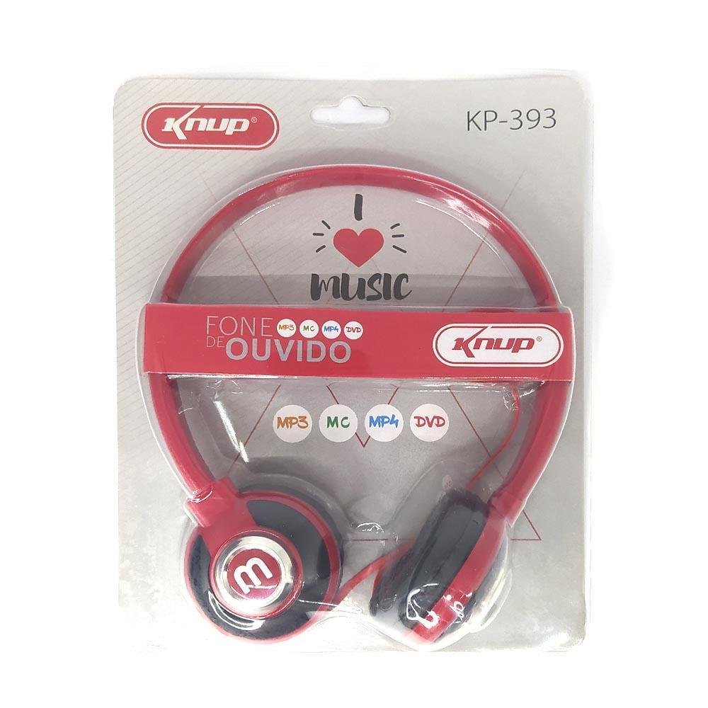 Fone De Ouvido Com Haste Ajustável E Espumas Confortáveis Knup KP-393 Vermelho