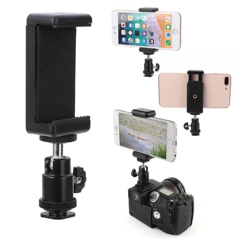 Com este adaptador giratório você transforma seu tripé ou bastão comum em uma poderosa ferramenta para criação de vlogs. Ele funciona como um elo entre o tripé ou bastão e o suporte de celular ou câmera, tornando girá-lo e fixá-lo em diversos ângulos e posições. Este modelo apresenta duplo encaixe na parte inferior: um com encaixe de 1/4 polegadas e outro do tipo sapata, ideal para montar em câmeras DSLR ou outros modelos com este tipo de encaixe.