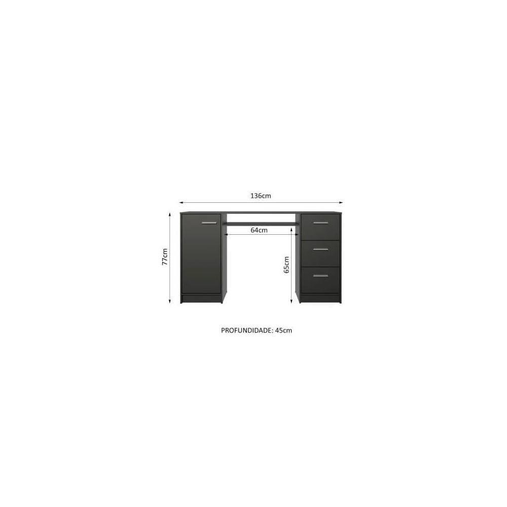 Escrivaninha Madesa Alaska 3 Gavetas 1 Porta - Cor: Preto