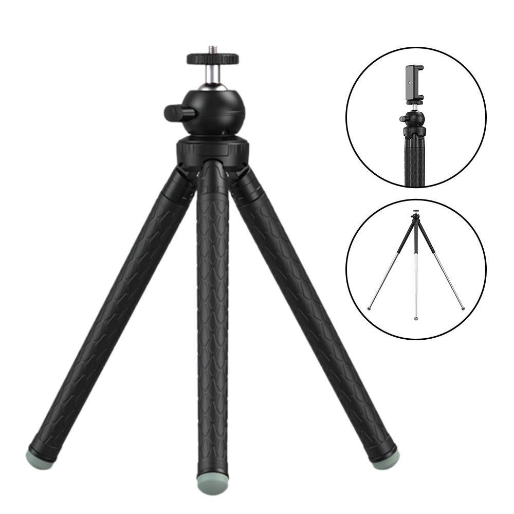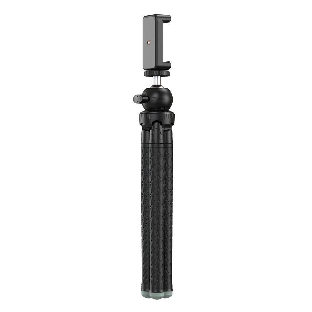 Monte sua câmera DSLR ou celular e capture fotos e vídeos perfeitos com este tripé extensível da Apexel. Suas pernas embutidas podem se estender e travar em 7 diferentes estágios, podendo chegar a uma altura máxima de 1,1 metros. Conta com suporte de celular integrado, que pode ser removido, dando espaço a um parafuso universal de 1/4 polegadas para câmeras com este padrão de encaixe, câmeras GoPro (necessário adaptador – não incluso) e muito mais. A cabeça esférica de 360° facilita o uso em todas as direções, enquanto os pés e pernas emborrachados oferecem maior estabilidade aos equipamentos, mesmo na extensão máxima.