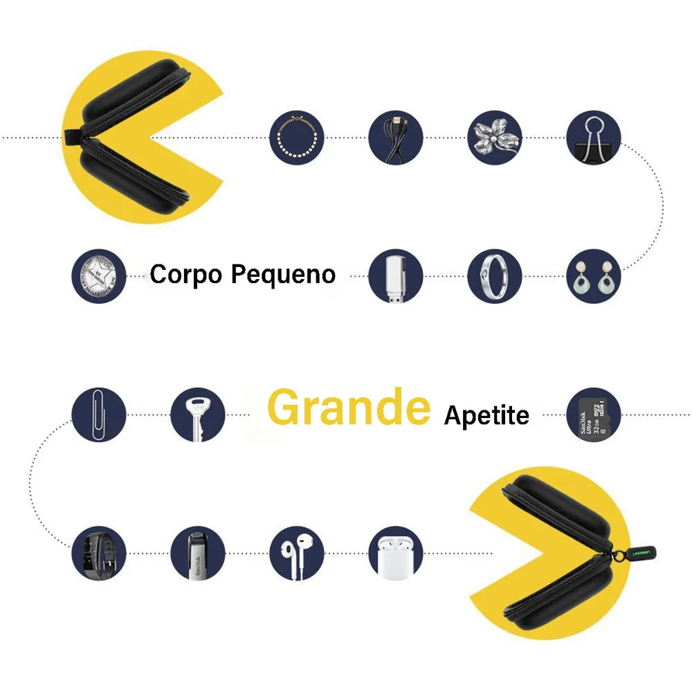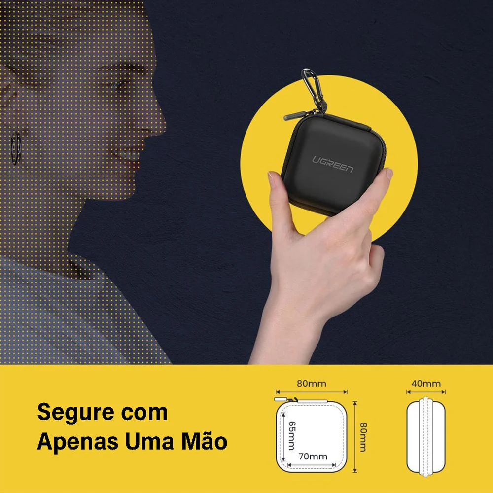 Case Estojo Fone de Ouvido Ugreen Preto 8 x 8 x 4cm Serve no Pamu Slide modelo básico sem o carregamento wireless fone charge. Fica na medida, e deixa bem protegido Ótimo para guardar e proteger fones de ouvido, cabos, carregador etcCase é feito de EVA à prova d'águaMaterial de pano interior macioDesign de zíper, fácil para abrir e fechar O case para fones de ouvido da UGREEN é um elegante estojo à prova de água e armazenamento para os seus Airpods / Bose / Beats / Sony e outros fones sem fio, leitor de cartões / carregador USB / Receptor de Bluetooth / MP3 / SD Cartões / Moedas / Chave / USB Cabos, etc. Projetado com um revestimento duro à prova de choque e resistente a água EVA e linner interno macio, este gabinete pode evitar danos ao fone de ouvido ou a pequenos dispositivos contra quedas de acidentes ou dias chuvosos. O bolso interno da malha pode oferecer uma boa proteção para seus dispositivos importantes, evitando torcer ou arranhar efetivamente. Design de zíper duplo de alta qualidade é muito mais prático e prático. Material: NeopreneTamanho Externo: 8 x 8 x 4cmTamanho Interno: 7 x 7 x 3cm
