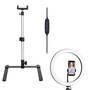 Este kit é composto por um suporte multifuncional para mesas e superfícies planas, com encaixe para celulares, onde também pode ser anexado o iluminador circular de led (ring light), ideal para fotógrafos em geral.