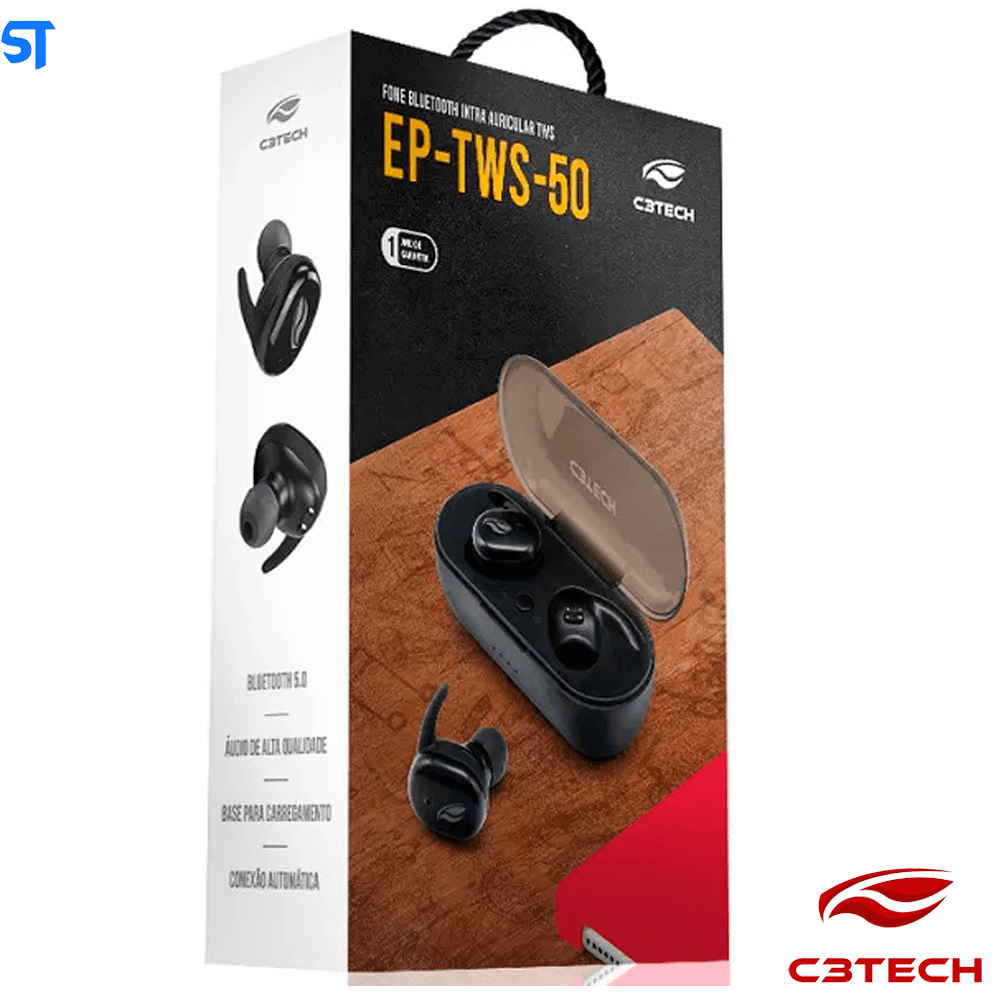Fone De Ouvido C3tech Sem Fio Preto - Ep-tws-50bk Bt 5 Tws - C3Tech