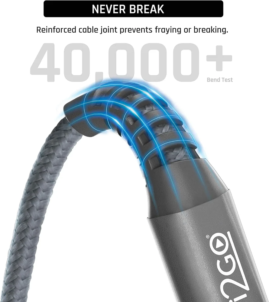 Quando o assunto é resistência e durabilidade, o Cabo USB-C + Lightning i2GO PRO se destaca através de sua blindagem em folha de alumínio e malha de cobre protetora, tendo sido desenhado e testado para suportar mais de 30.000 dobras sem danificar o seu funcionamento.