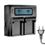 Este Carregador Duplo LCD para Bateria Canon LP-E17 com Carga Rápida (Bivolt) restaura a energia para uma ou duas Baterias Canon LP-E17através das placas dedicadas incluídas. Estes podem ser substituídos por placas opcionais para várias outras baterias. O tempo de Carregamento é entre duas e seis horas. A tela LCD exibe a porcentagem de carga de cada bateria. O Carregador possui dois modos, Modo Rápido ´´Fast´´ e Modo Lento ´´Slow´´. Você pode escolher o modo de que precisa. Quando as baterias estiverem totalmente carregadas e prontas para funcionar, o Carregador irá parar de funcionar.OCarregadorpara Bateria Canon exibe em seu Visor de LCD o status de Carregamento, capacidade da bateria, ele pode carregar duas baterias ao mesmo tempo, possui Sistema de proteção inteligente com Carregamento rápido com controle automático de corrente constante evita que a bateria fique sobrecarregada, curto-circuito e choque eletrônico, descarga excessiva, temperatura excessiva, sobrecarga de corrente, funções de proteção contra sobretensão, como desempenho estável, seguro e confiável.O Carregador Duplo Portátil e Confortável para Bateria Canon LP-E17com Visor de LCD é Bivolt funcionando com 100-240 VAC. Possui saída USB (5V/2.1A) para Carregar SmartPhones, Ttablets e outros dispositivos alimentados por USB.