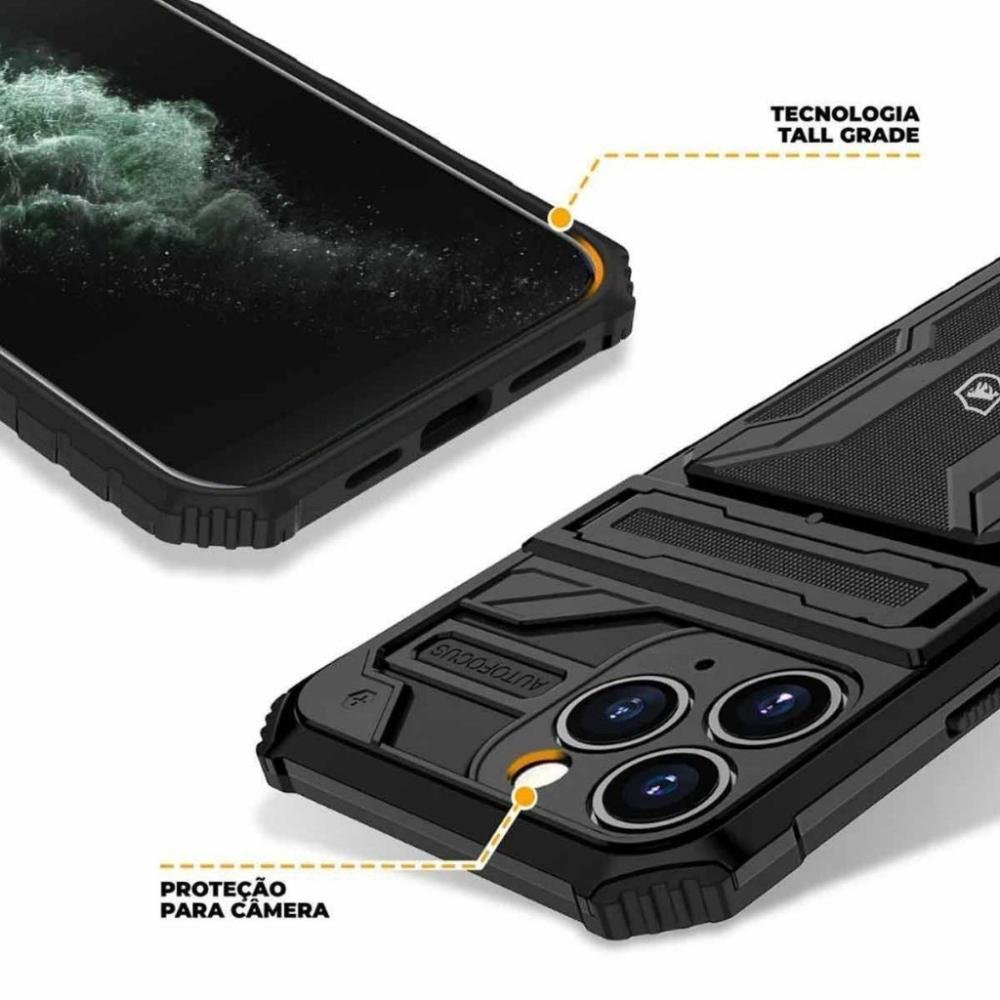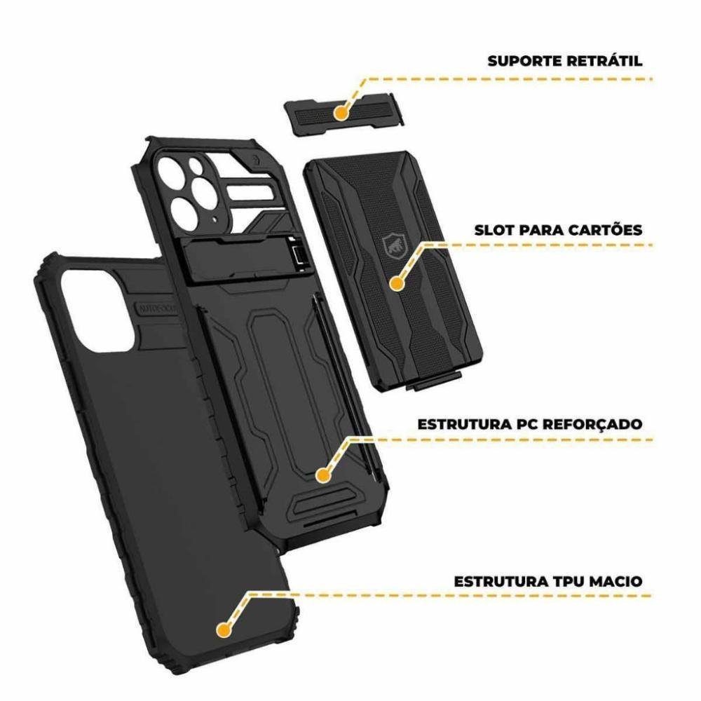 Use a melhor capa para Samsung iPhone 11 Pro Max A Capa Guardian da Gorila Shield para Samsung iPhone 11 Pro Max, foi desenvolvida para proteger seu aparelho, com a mais alta tecnologia de absorção de impactos, garantindo extrema segurança. Fabricado com um design leve e fino, mas sem perder a segurança de proteção para seu celular. A Capa Guardian tem um encaixe perfeito para adaptar-se totalmente ao seu aparelho, deixando os botões livres. Possui uma alça Kickstand, que permite utilizar o celular apoiado na horizontal. Além disso, a capa Guardian oferece um compartimento exclusivo para guardar seus cartões. Confira seu modelo antes de finalizar a compra.
