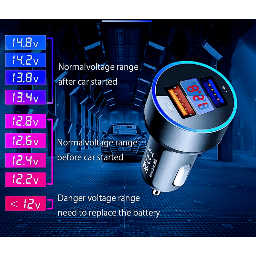 Carregador Veicular, Duplo Usb, Qc 3.0 E 2.4a Com Display Lcd.