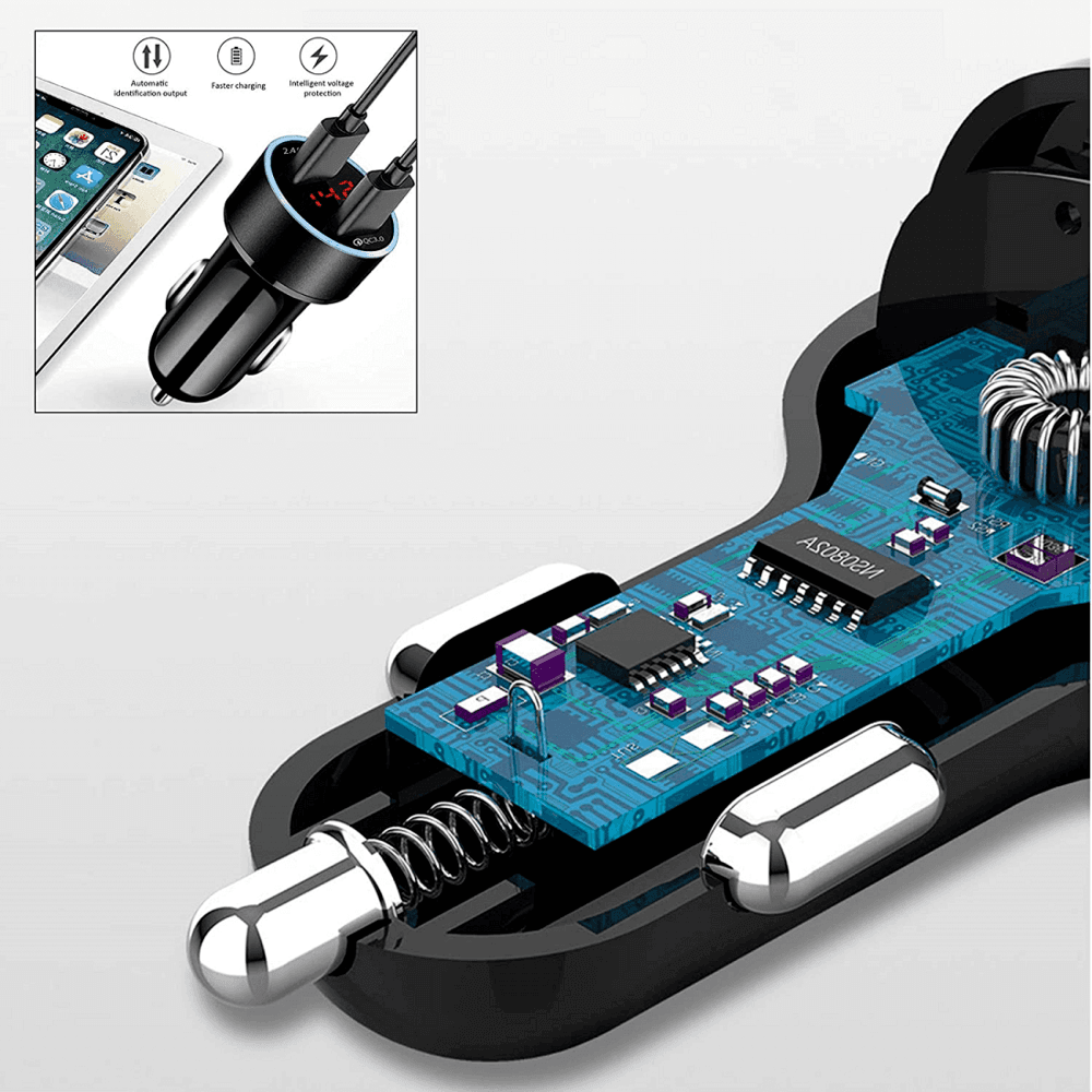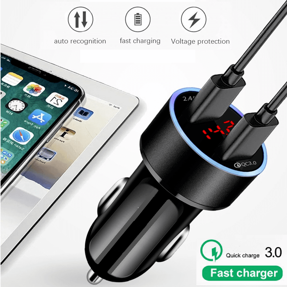 Este Carregador Veicular Duplo USB Quick Charge 3.0 e 2.4a com Display LCD possui 2 portas de carregamento USB (QC3.0 + 2.4A) Carregador dois dispositivos simultaneamente, com distribuição de corrente inteligente, ele usa Chip Inteligente de Gerenciamento de Energia para não Danificar seu equipamento no carregamento. Este Carregador Rápido e Inteligente com porta USB dupla, dois dispositivos eletrônicos podem ser carregados ao mesmo tempo, é compatível com a entrada de tensão DC 12-24V. Ampla compatibilidade e suporta vários protocolos de carregamento rápido, como Qualcomm Quick Charge 3.0 / 2.0, Samsung AFC, Quick Charge BC1.2, entre outros compatível com praticamente todos os modelos de Veículos, Caminhões, entre outros.Carregador Veicular Duplo USB com Display LCD mostra claramente a tensão e a corrente para você em tempo real e o mantem atualizado com o status do veículo, o LED pode ser mais confiável e seguro, sua Luz é perfeita para viajar e uso ambiente noturno. O Chip Inteligente de Gerenciamento de Energia integrados para um Carregamento Rápido e seguro, protegendo seu equipamento contra superaquecimento / sobre corrente / sobre tensão / sobrecarga, este carregador de carro rápido detecta automaticamente a corrente certa para alcançar a velocidade de carregamento mais rápida possível para seus dispositivos.O Carregador Rápido Duplo USB para carros é adequado para todos os tipos de Câmeras, SmartPhones, Tablets, Power Banks, entre outros.