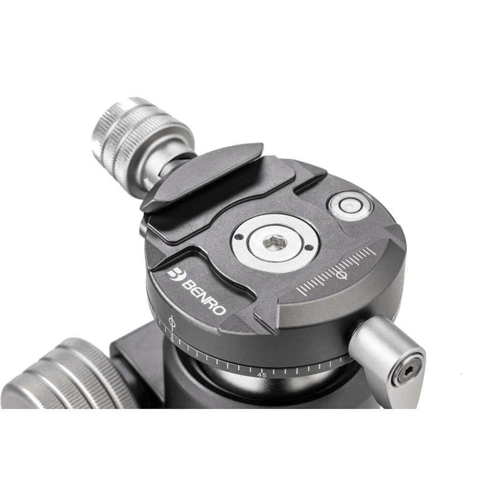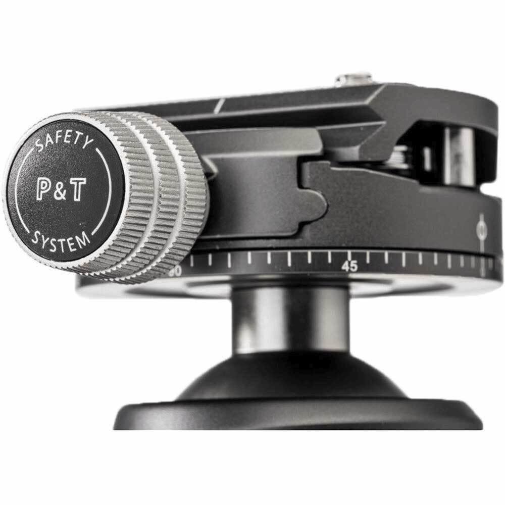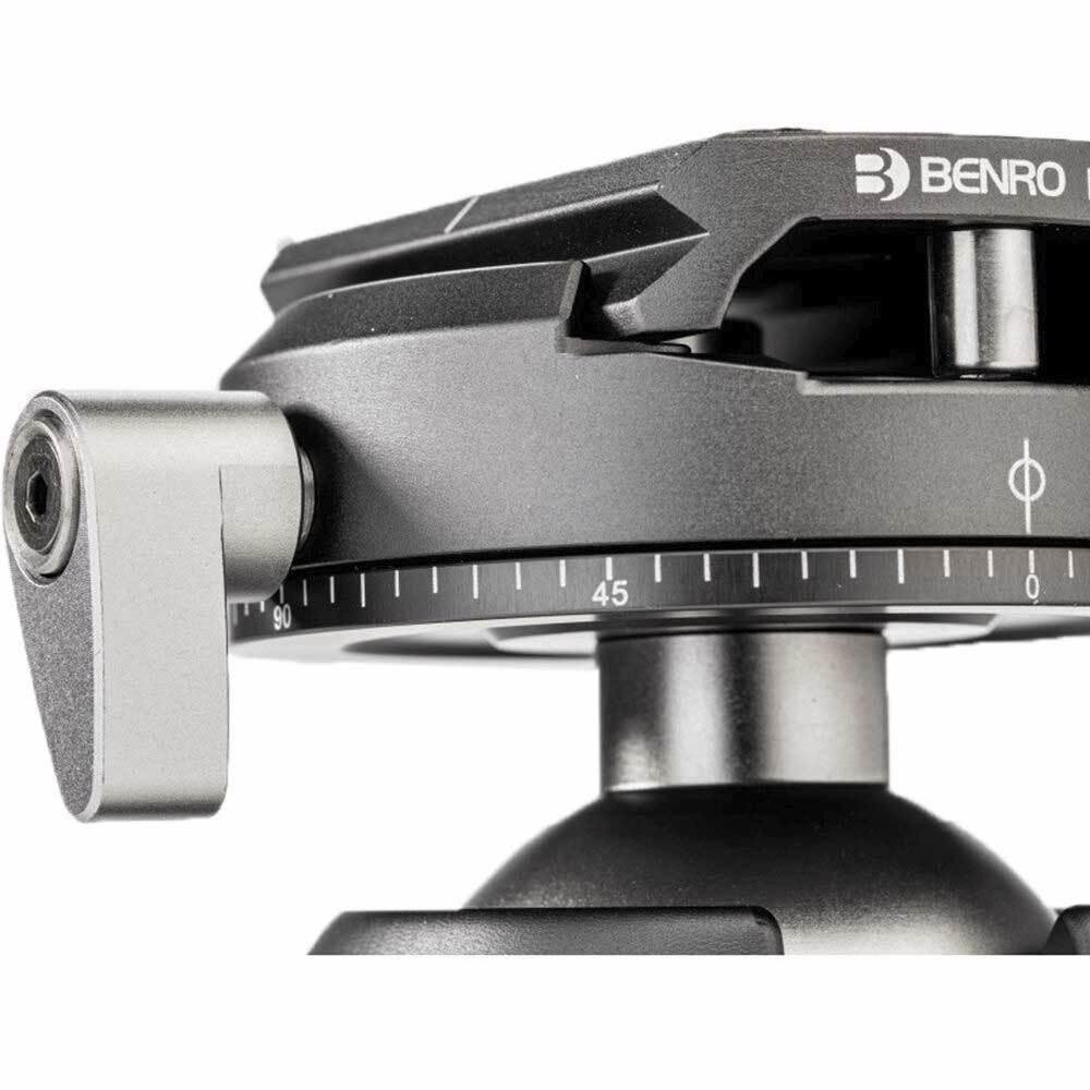 Oferece modo panorâmico duplo, tanto na base da cabeça como na plataforma do engate rápido. O botão de trava principal em forma de arco facilita o ajuste de fricção.