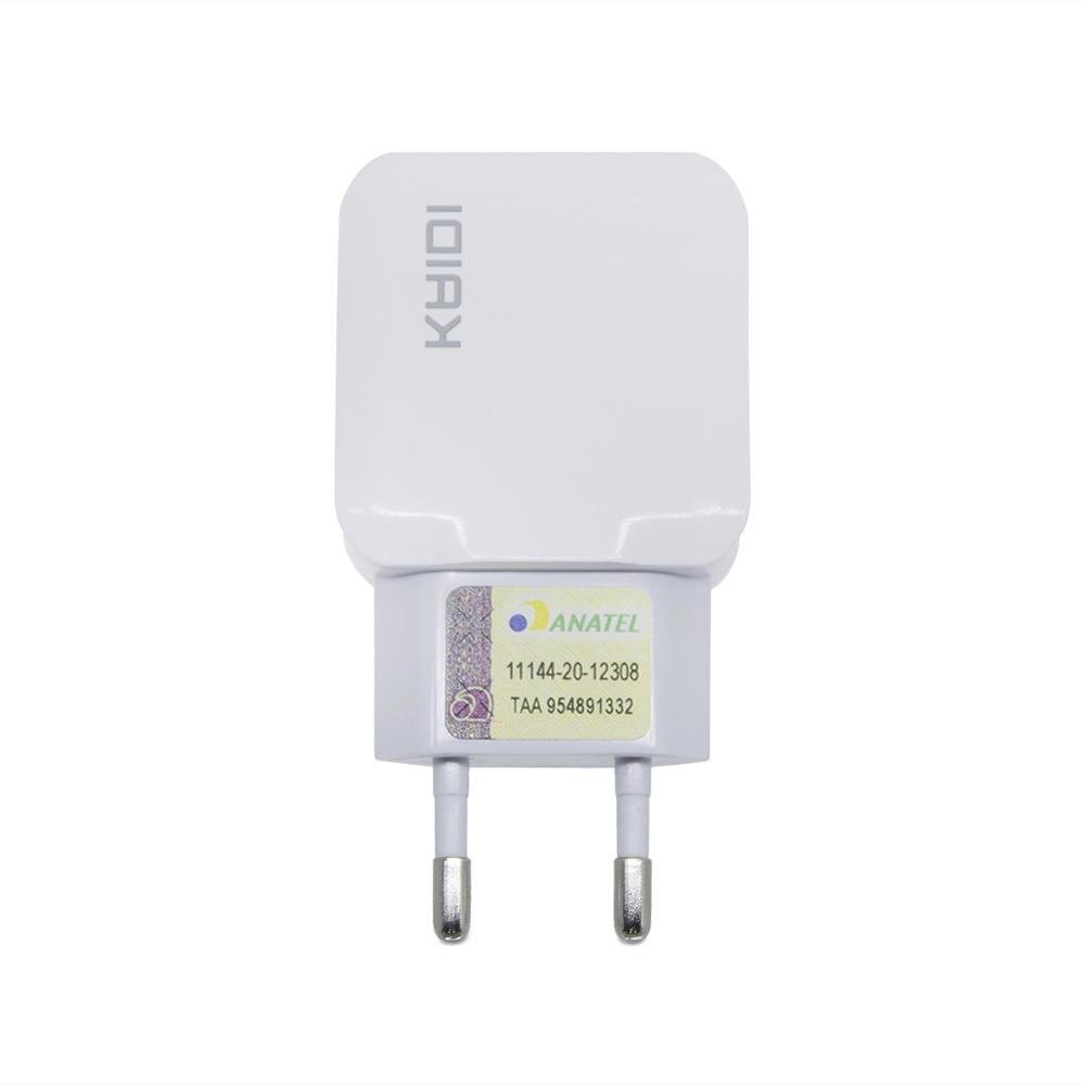 Carregador De Tomada Universal USB Kaidi CARREGADOR DOMÉSTICO, 2 portas, Branco - Kd-301