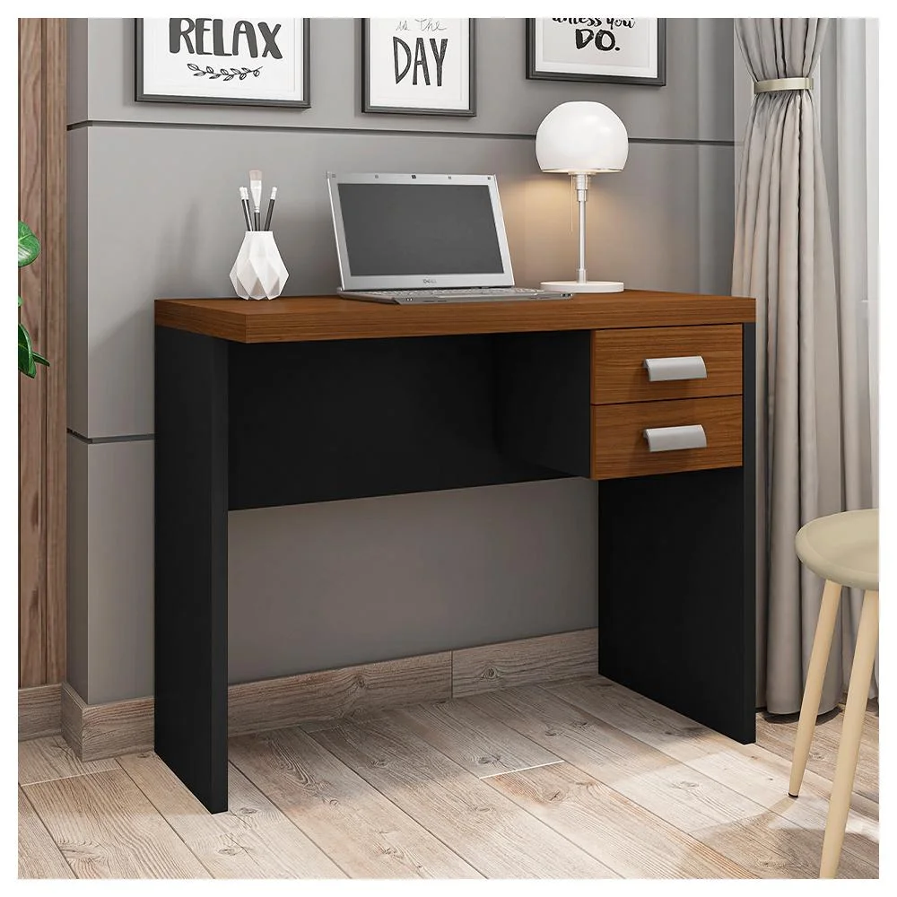 Mesa de computador studio 900 + gaveta studio - nogueira caiena/preto txa mesa studio gaveteiro preto chegou para completar seu ambiente de trabalho, com um design sofisticado e inovador. Possui gaveteiro com corrediças telescópicas. Feito em mdp e hdf possui maior durabilidade e resistência, transmitindo maior segurança ao móvel.