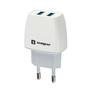 Carregador de parede com porta Usb para carregar seus dispositivos através de uma tomada elétrica de parede. Carregador de parede universal com 2 entradas USB 3.1A. Carregar 2 dispositivos ao mesmo tempo ficou mais fácil, basta conectar seu carregador na tomada e em seu dispositivo e pronto, terá a bateria carregada de forma prática e rápida. As portas USB são universais, podendo assim carregar qualquer tipo de dispositivo com entrada USB. Design compacto e leve, ideal para viajar