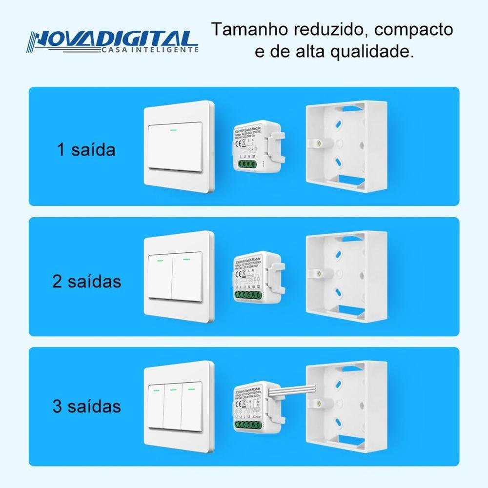 E-deal shop: a loja ideal para você!segurança e qualidade garantidas!nossa missão é garantir que a nossa oferta seja a sua melhor escolha.depois de nos escolher, seu pedido vira uma ordem e nosso dever será fazer com que a sua experiência de compra on-line seja a melhor possível!pronta-entrega para todos os produtos anunciados.em menos de 24h seu pedido será enviado, para garantir que chegue dentro do prazo, ou até antes. A qualidade dos nossos produtos é superior, pois buscamos a sua aprovação ao usá-lo.a sua satisfação também será a nossa, ao recebê-lo novamente em nossa loja! Te esperamos aqui!a sua tranquilidade é muito importante para nós, e caso precise, estaremos a disposição para te ajudar com o que precisar!novo módulo mini wi-fi tuya nova digital de 3 canaiscontrolar o funcionamento dos aparelhos através de um smartphone ou tablet utilizando wifi é um dos projetos de automação mais requisitados. Quando se fala em automação residencial, uma das primeiras coisas que vem à mente é: acionamento de lâmpadas através de wifi. Se você procura uma solução simples, prática e de ótimo custo benefício para controlar remotamente lâmpadas e alguns equipamentos domésticos, este produto é uma excelente opção.para tornar o seu dia a dia mais versátil, adquira o módulo mini wi-fi de 3 canais. Aproveite para programar o melhor horário para ligar automaticamente toda a sua iluminação.