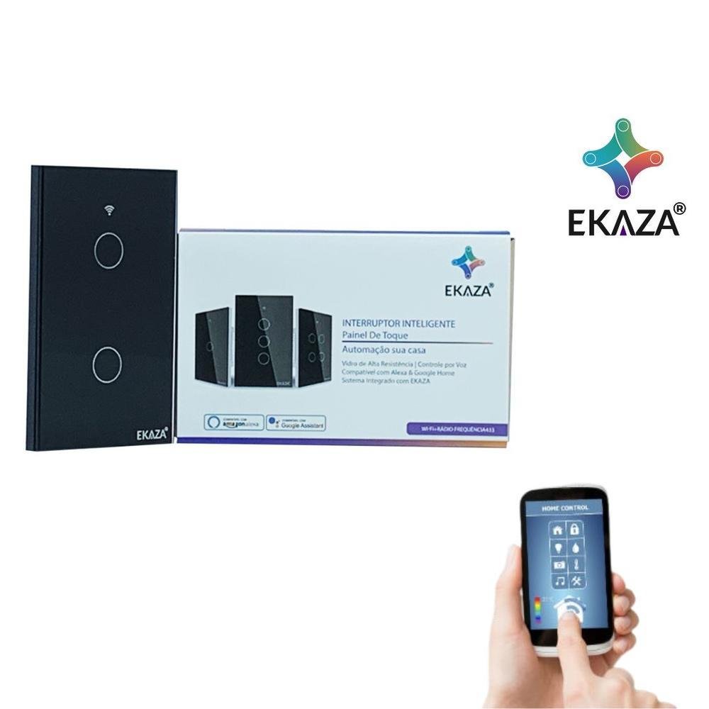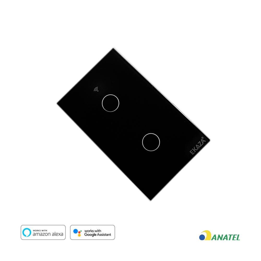 Interruptor Ekaza, 2 Botões, Vidro, Wi-fi+bte+rf - Eknh-t107-2 - Preto