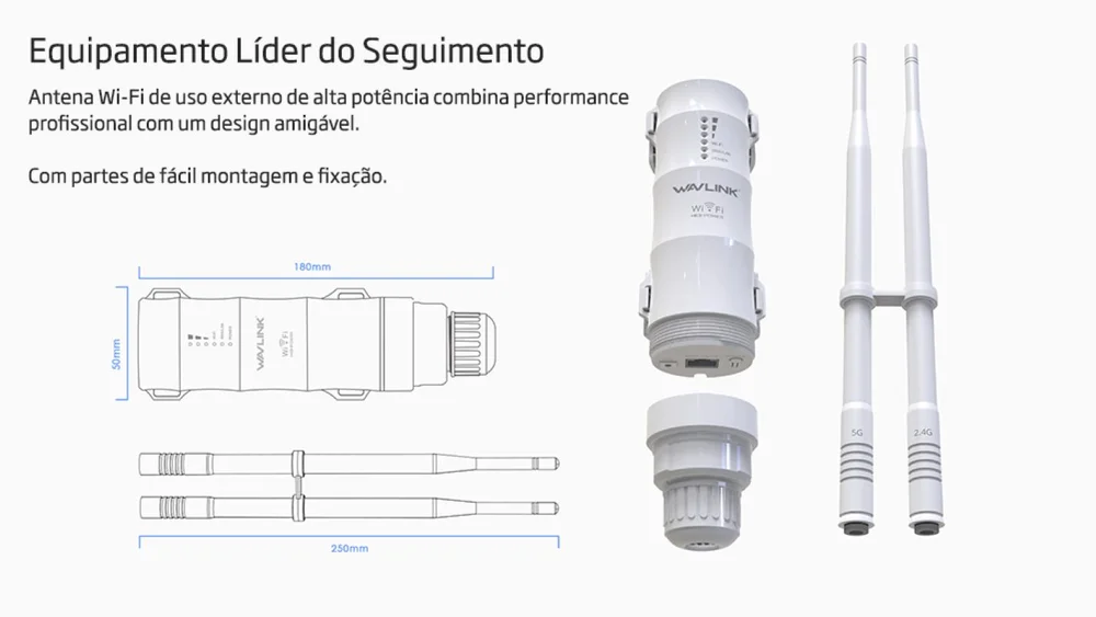 Antena wi-fi de uso externo de alta potência, 600mbps, 2.4 ghz / 5 ghz, poe, wl-wn570ha1 PRO wavlink.