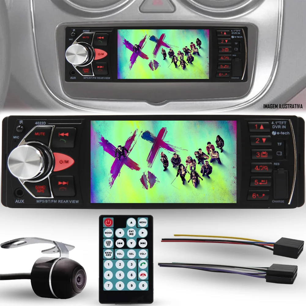 características e recursos:- tela digital de 4´´ com resolução de 720p- sistema pal/ntsc- conexão usb e cartão mini sd/mmc- 7 cores de iluminação dos botões- conexão com aparelhos celulares para ligações e músicas- suporte a formatos de vídeo: avi / mp4 / ts / asf / flv / pmp / rmvb entre outros- formatos de áudio: mp3 / wma / ogg / aac / ape / ac3 / dts / wav / amr, entre outros- suporte para exibir fotos- suporte para controle de pastas e sub pastas das mídias gravadas- saída para telas sobressalentes- entrada para câmera de estacionamento traseira- rádio com 18 memórias de fm- 4 saídas a fio 4x50w, 2 saídas rca- controle remoto multi-funções- acompanha câmera de ré.itens inclusos:- 1 mp5 4´´ polegadas- 1 câmera de ré- 2 chicotes ligação do aparelho- 1 manual do usuário.