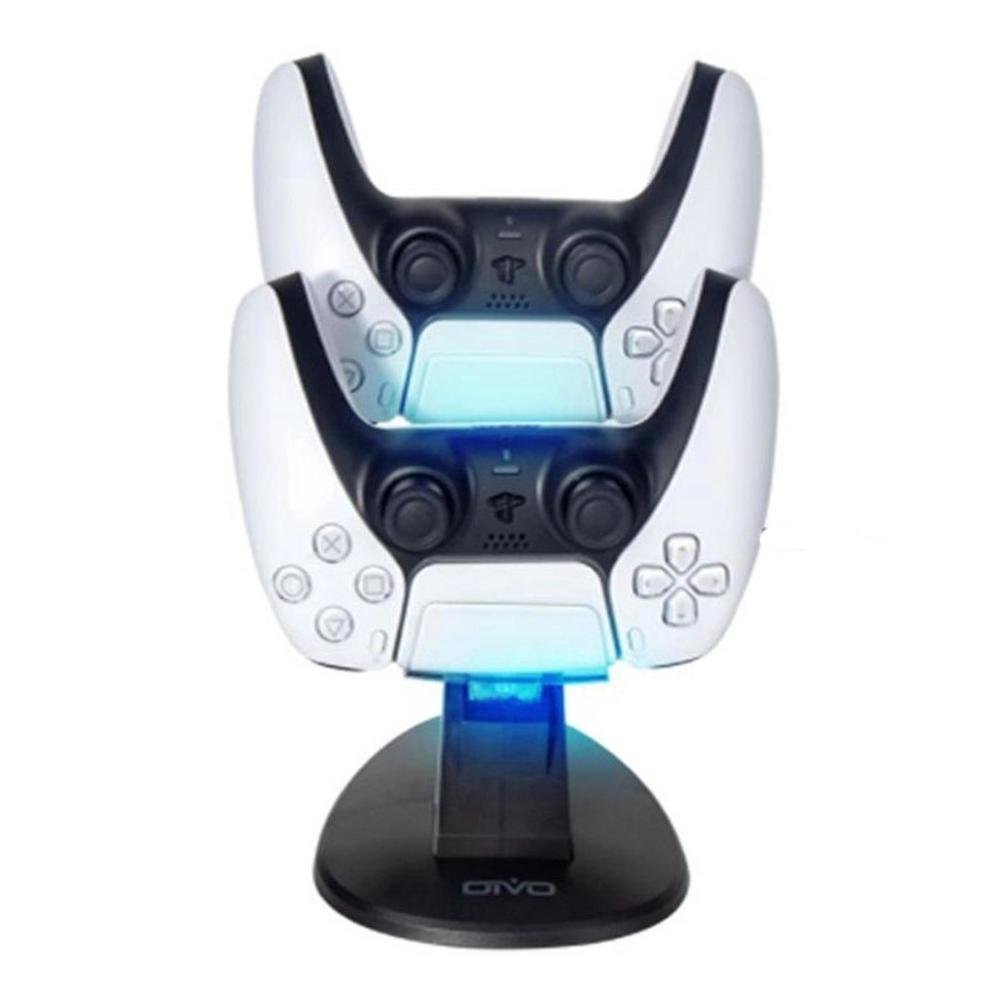 Dock stand para carregar controle joystick de ps5. permite guardar e carregar dois controles joystick ps5 simultaneamente. Fácil de usar e rápido para carregar. características: - carrega 2 controles joysticks ao mesmo tempo. - carregue no console ou em qualquer porta usb. - funciona como stand suporte para os controles joysticks. - base carregagora compatível com a marca e o modelo do anúncio. - voltagem: 5v - conector de encaixe type-c. - carregamento completo em até 3 horas. itens inclusos: 01- dock carregador de joystick ps5. 01- cabo usb.