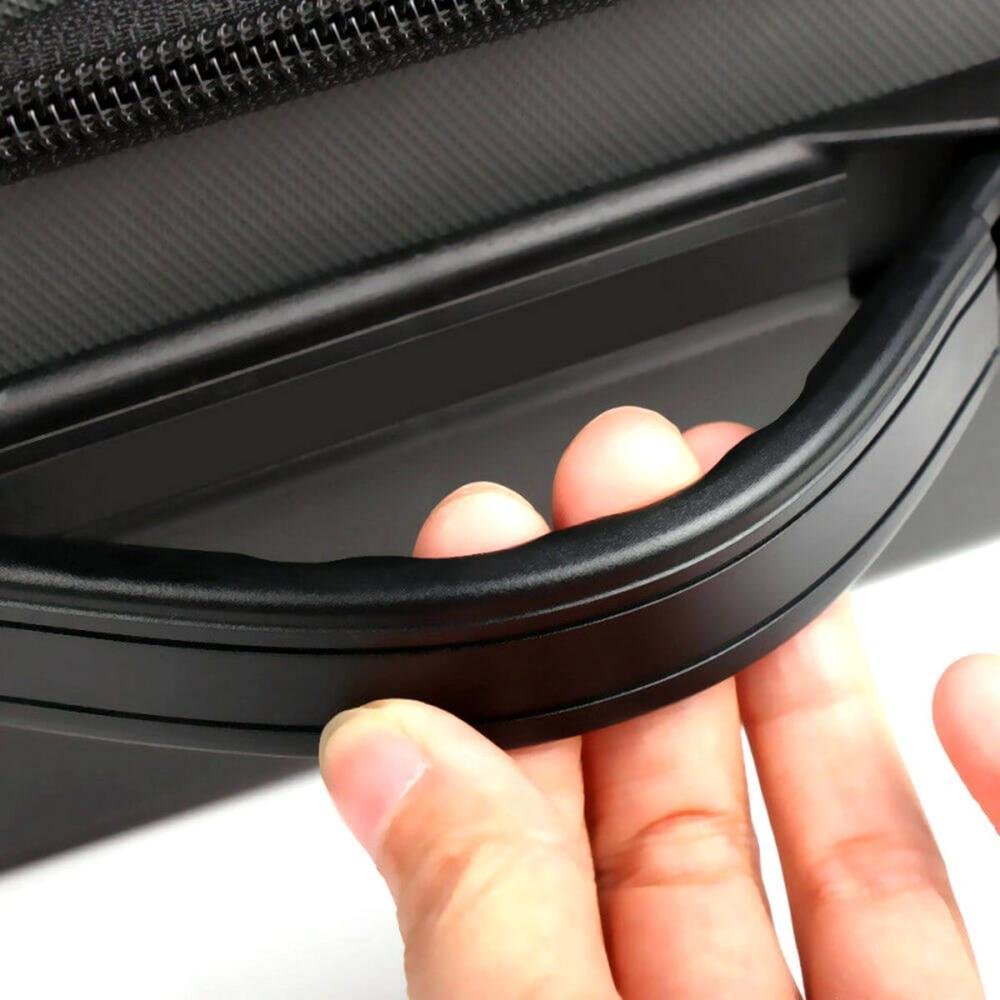 ela é toda produzida com materiais de alta qualidade e durabilidade. O exterior é feito com pu, apresentando resistência à agua (respingos) e poeira, enquanto o interior é fabricado em eva, moldado especificamente para o drone e seus acessórios, oferecendo total segurança ao seu equipamento durante o transporte e armazenamento. Possui excelente acabamento, design elegante e diferenciado, costuras reforçadas e zíper de alta qualidade. Possui ainda alça de mão confortável e também acompanha uma alça para transporte no ombro.