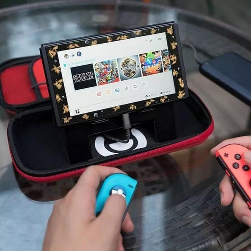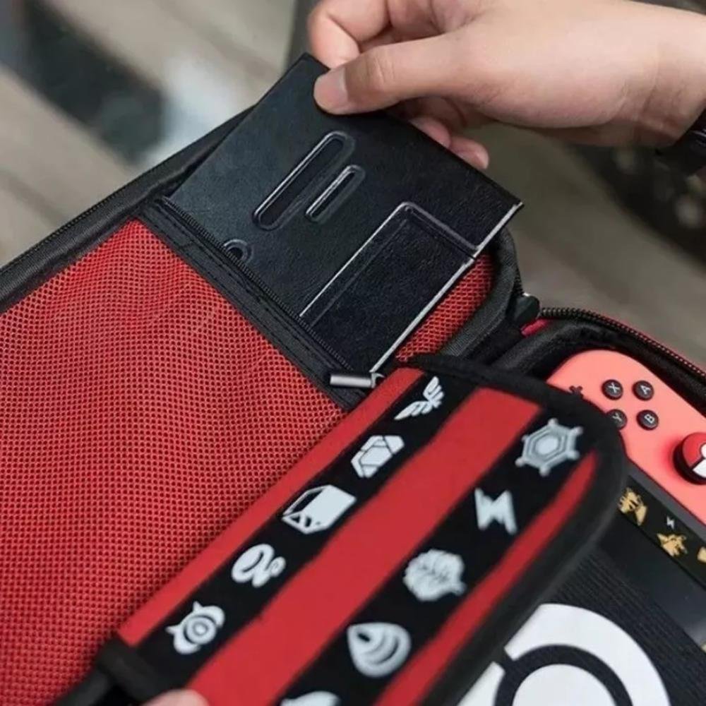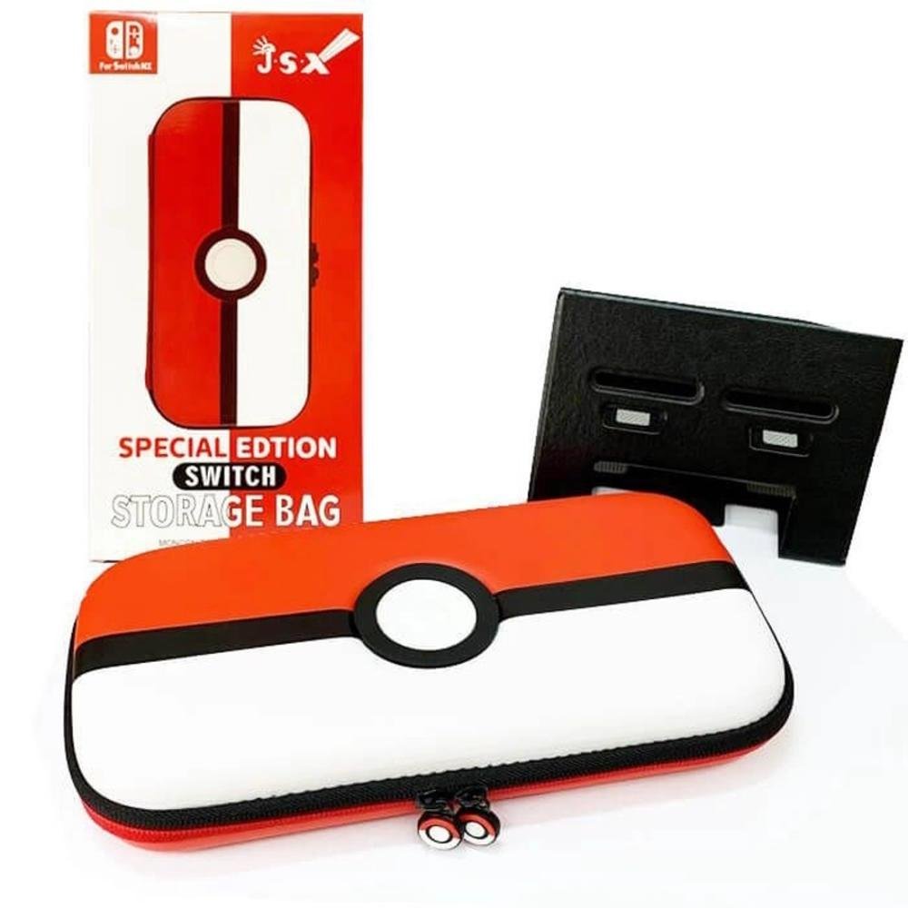 Case protetora compatível com nintendo switch - edição especial pokémon ball características traga o seu parceiro pokémon aonde quer que você vá para se tornar um mestre pokémon com a bolsa poke ball. Bolsa resistente e leve para o console nintendo switch com armazenamento interno e arte de pokémon dentro e fora. (nintendo switch não incluído.) bolsa full color vermelho e branco armazenamento interno para cartões de jogo switch; durável hard shell case detém e protege o nintendo switch. O divisor acolchoado protege a tela e os bolsos de malha com zíper para armazenar seus cabos alça de velcro ajustável protege o console com ou sem joycons conectados acompanha suporte de host interno, design de ventilação, tecnologia antiderrapante preto, pode ajustar o ângulo à vontade especificações dimensões do item: 26cm x 12cm x 4cm material do item: eva velvet capacidade de slot para cartão: 10 tema: pokebola plataforma: nintendo switch conteúdo da embalagem 01 - case hard pouch pokemon 01 - base suporte para console