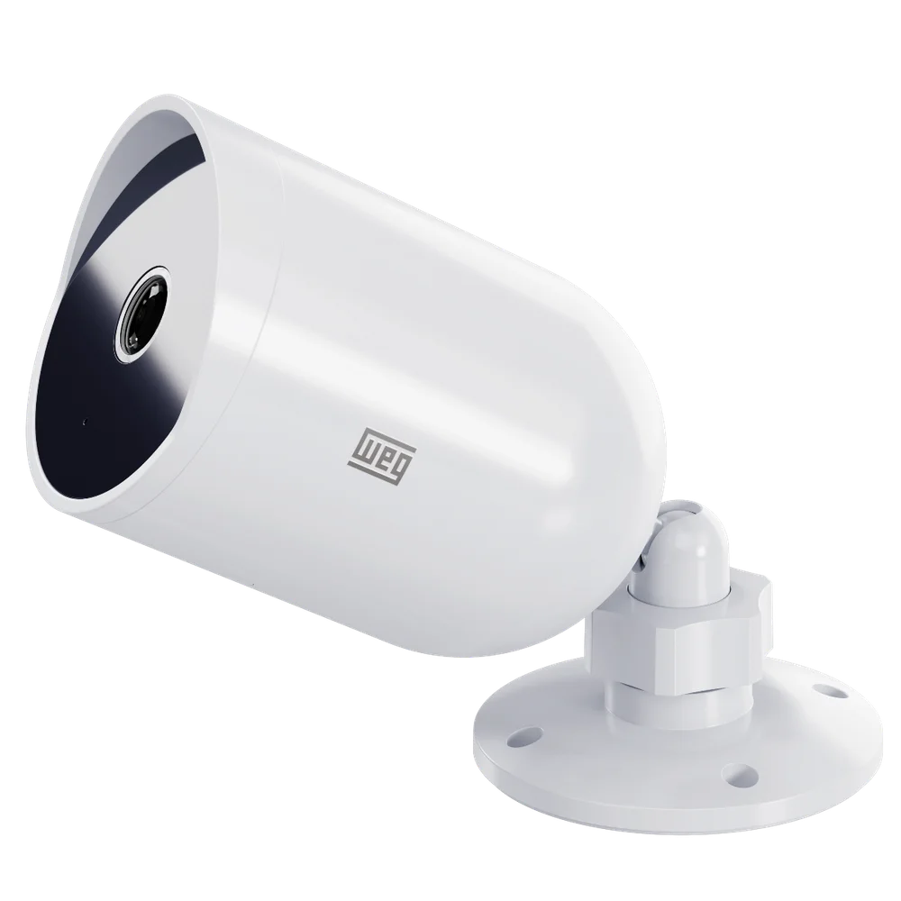 Funcionalidades: câmera à prova d’água, com proteção solar e resistência ao frio e à poeira, áudio bidirecional, detecção de movimento e visão noturna. Acesso remoto para controle e monitoramento pelo aplicativo weg home.