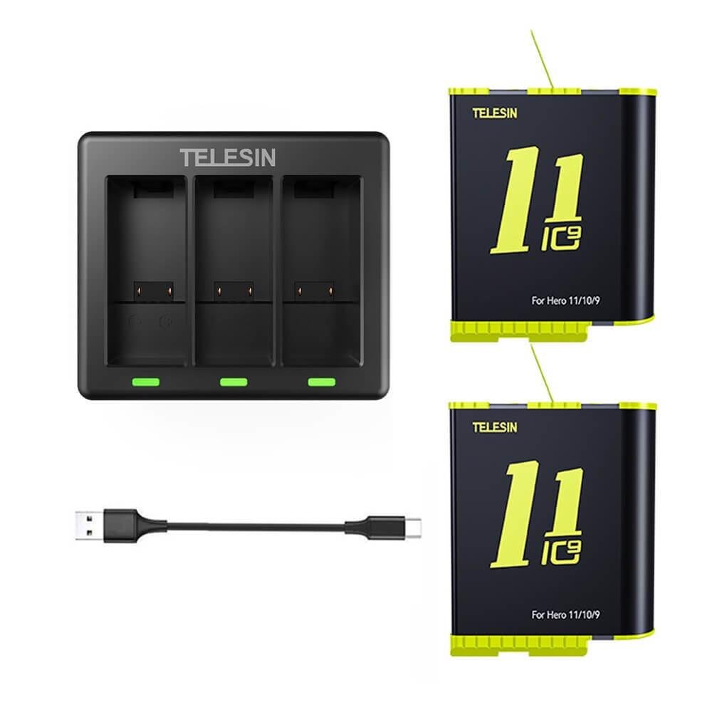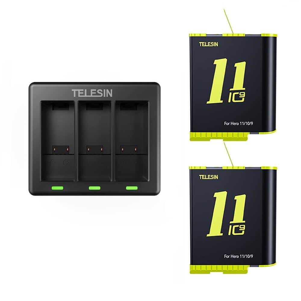 Carregador Triplo Telesin, Com 2 Baterias Gopro Hero 11 / 10 / 9 Black