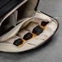 A parte frontal da mochila pode ser totalmente aberta para acessar o interior, mas você também pode acessá-la pela lateral para encontrar seus equipamentos. No interior, vários bolsos e um conjunto de divisórias ajustáveis que permitem organizar e proteger seus itens individualmente, configurando-se da maneira que você deseja utilizar.
