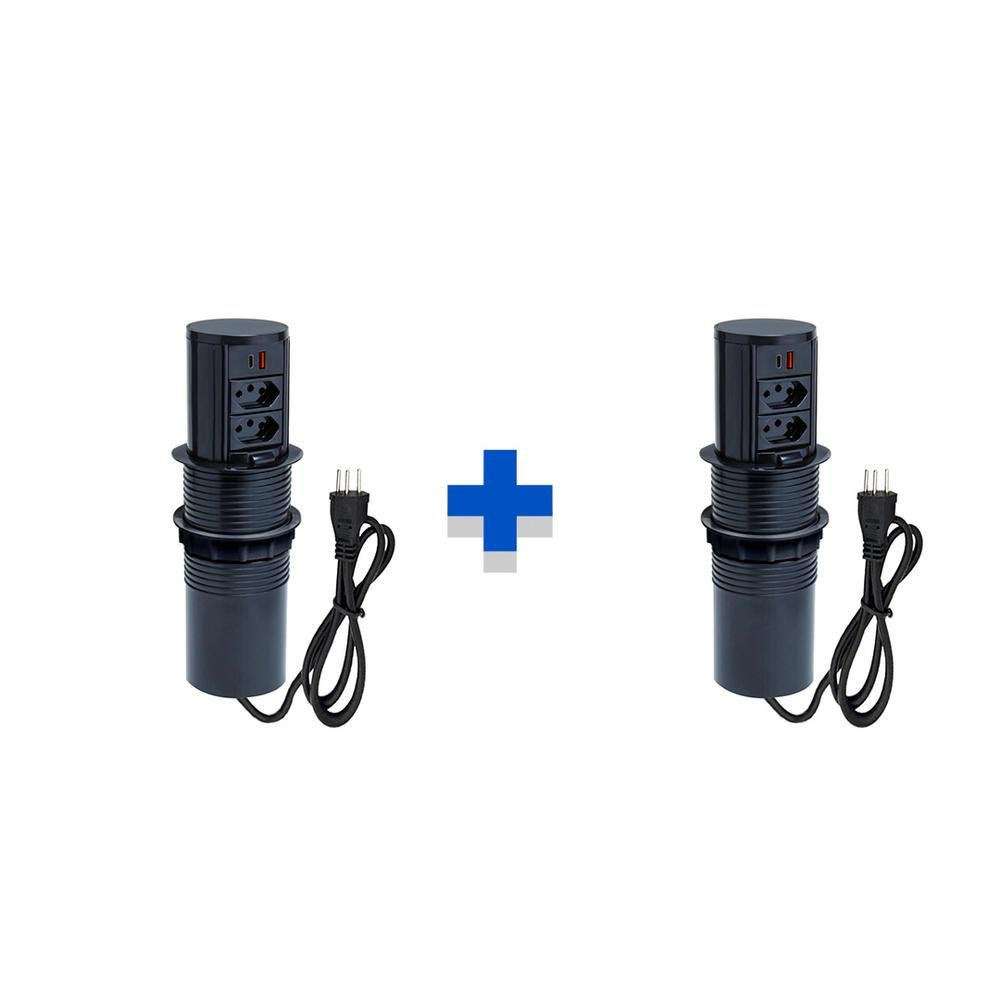 A connect caixa tomada desenvolveu esta torre de tomada que é uma opção compacta para levar acessibilidade elétrica para onde você precisar. Fácil manuseio, com apenas um toque em sua tampa para destravá-lo, basta puxá-lo para cima, após utilizá-lo, desconecte os plugs em uso, basta empurrá-lo para baixo até travá-lo e o corpo fica totalmente escondido dentro da bancada ou de onde estiver inserido. especificações: marca: connect caixa tomada cor: preto voltagem: 127v/250v (bivolt) conteúdo da embalagem: - 2 torre de tomada totem slim manual - 4 tomadas 10a - 4 usb 9.0a - 2 cabo de alimentação com 1,5m de comprimento (é só plugar na tomada e utilizar) - dimensões gerais: dimensional externo: diâmetro 97 mm x 181 mm dimensional de corte: diâmetro 80 mm x 179 mm (faça a furação somente com a peça em mãos) aplicação: totem para bancadas e armários aéreos de cozinha, sala de estar, estofados, móveis sob medida, home theater, mesas de reunião, salas de conferência e treinamento, painel de tv, showrooms, estação de trabalho e escritórios em geral. utilização: residencial e corporativo. garantia: o produto tem garantia total de 12 meses, sendo 3 meses pelo código de defesa do consumidor (cdc) + 9 meses pela fábrica.