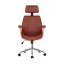 A cadeira kopenhagen presidente é toda revestida em couro ecológico e possui sua estrutura em madeira, o que a torna ótima por conta de seu design para salas de reuniões e presidência. Ela também possui o mecanismo relax, o que irá manter quem estiver sentado nela mais confortável, o que unido a seu encosto de cabeça é ainda mais confortável, além de ser possível ajustar a altura do assento.