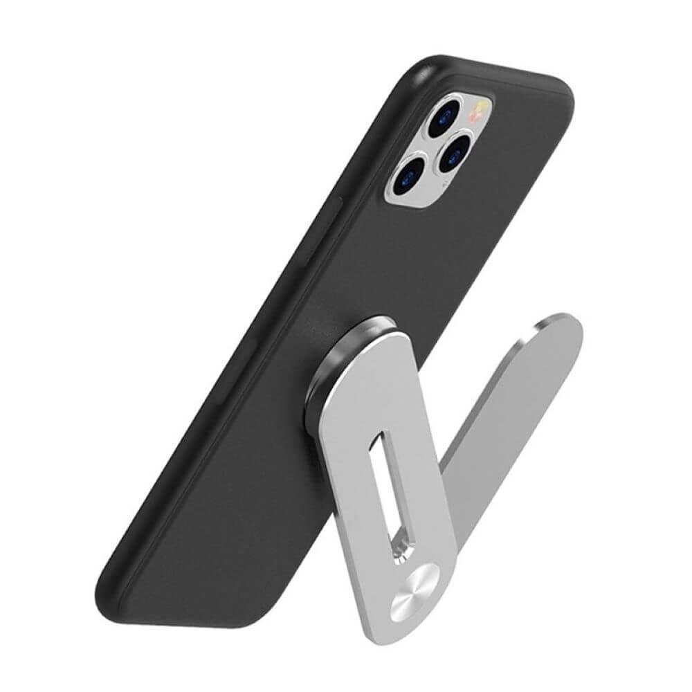 Ele consiste em uma haste de alumínio que se movimenta e inclina a 60º, possuindo em uma das extremidades um adesivo de fixação 3M, que deve ser aplicado na traseira do notebook ou tela desktop, e na outra ponta um encaixe magnético, para prender o celular. Para que isso ocorra, você deve colar a outra placa magnética que acompanha na traseira do seu smartphone, garantindo assim a fixação perfeita.