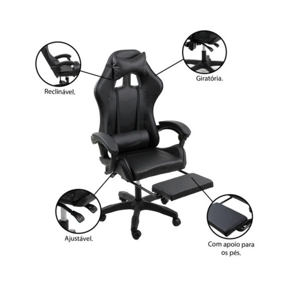 Cadeira Gamer Stillus, Até 120Kg, Ergonômica, Apoio Para Os Pés, Preto