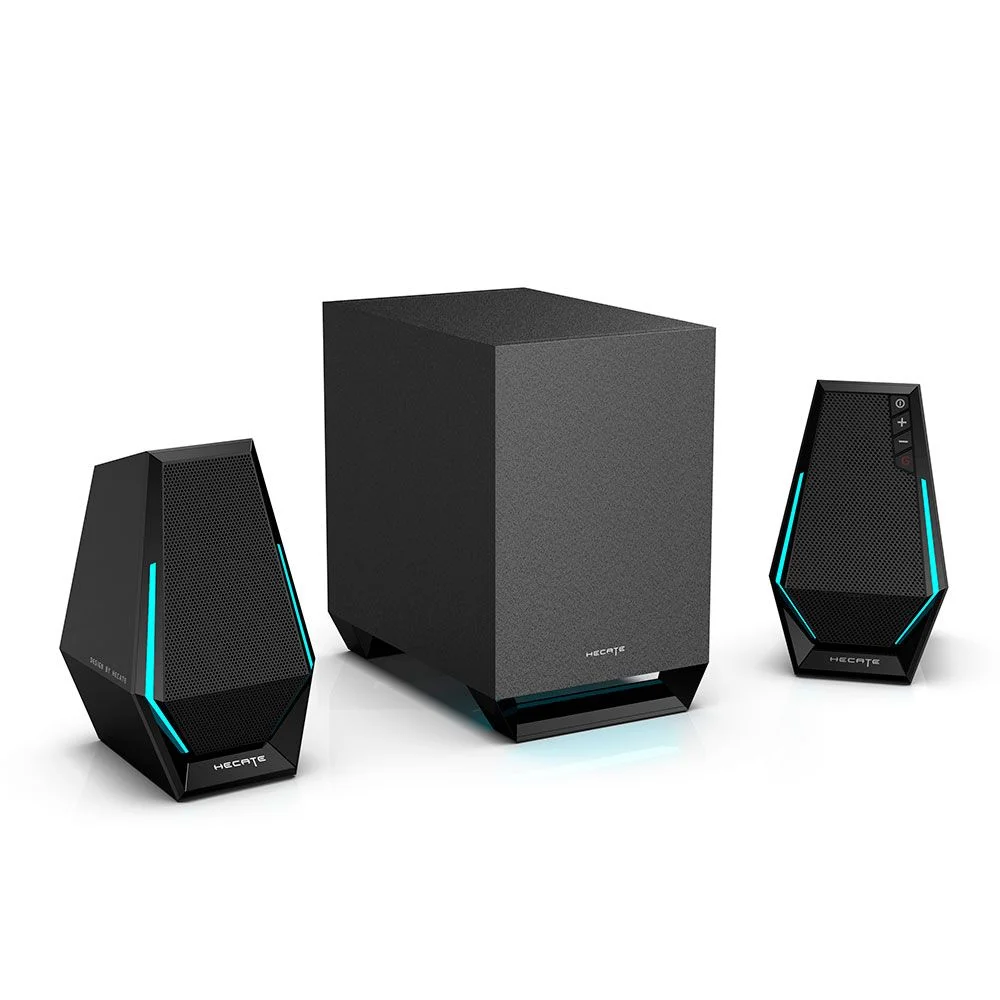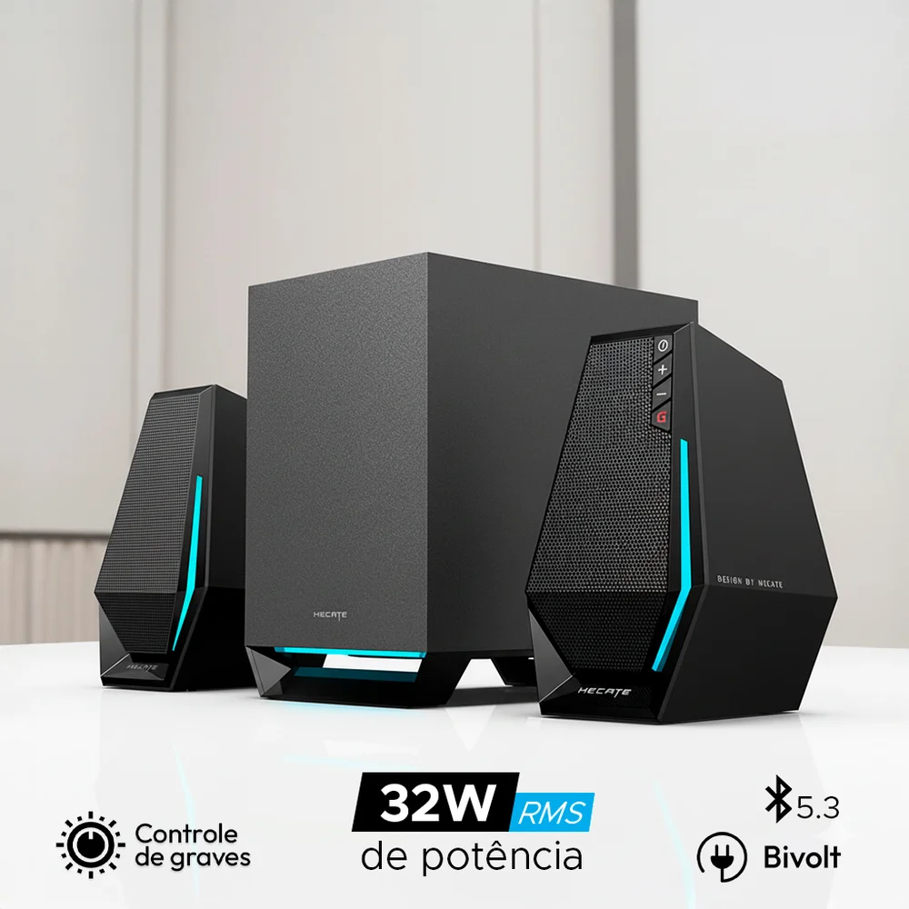 A caixa de som com subwoofer G1500 MAX tem design futurista com satélites em formato hexagonal e detalhes com iluminação RGB também no subwoofer. Potência de 30W RMS suficiente para preencher seu ambiente com som de qualidade. Possui 3 modos de equalização ajustados para Jogos, Filmes e Músicas