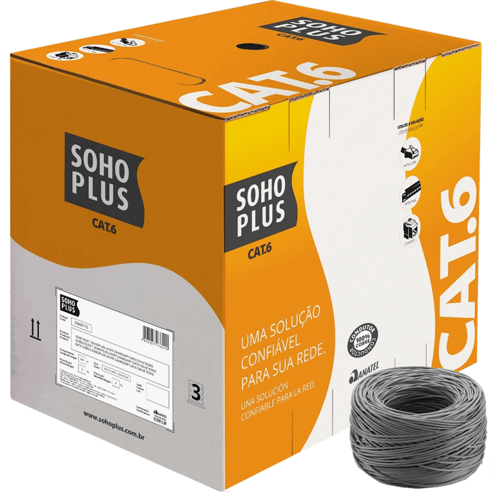 25 Metros De Cabo Rede CAT6 Sohoplus Furukawa, 100% Cobre, Cinza