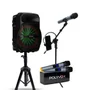 A Polyvox montou o kit para você montar o seu show. É tudo que você precisa para criar um som de qualidade. Uma Caixa Amplificada Bluetooth com entrada P10 para microfone e Guitarra ou violão. Pedestal para Microfone com Suporte para Celular para gravação/ transmissão online ou para acompanhamento da letra + Dois microfones sem fio + Tripé para Caixa Amplificada que ajuda na qualidade do som evitando barreiras sonoras.