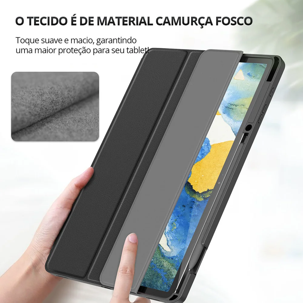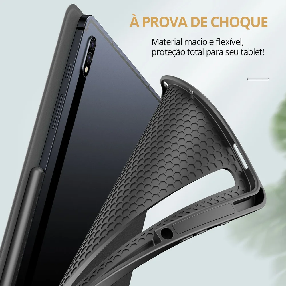 Capa premium flex cover anti impacto com fino acabamento galaxy tab s8 plus 12.4 pol 2022 sm-x800 sm-x806 destaques rápidos - função wake/sleep - resistência à quedas - recortes precisos p/ botões e saídas - diferentes ângulos de visualização - textura anti-manchas - fechamento magnético - suporte para caneta principais dúvidas: 1 - quais são os modelos que esse item é compatível? Modelos compatíveis: galaxy tab s8 plus 12.4" (sm-x800), galaxy tab s7 plus 12.4" (sm-t870 e sm-t875) e galaxy tab s7 fe 12.4" (sm-t730 e sm-t735) destacamos: - acabamento premium oferecendo proteção anticolisão, antirrespingos e antirriscos. - capa macia de silicone e reforço nos quatro cantos. Espessura nos cantos de 5mm. - recorte preciso, para saídas e entradas como alto-falantes e câmera. - função wake-sleep: ativa a tela ao abrir e desativa ao fechar. - possui suporte para caneta modo vídeo desfrute do modo apoio facilitando o seu dia à dia para assistir vídeos, slides e digitar, com diferentes ângulos. principais características do produto desenvolvido em material premium macio e flexível, com reforço nos quatro cantos, contando ainda com um fino acabamento interno, dando um toque de total de leveza e proteção. 100% de satisfação ou seu dinheiro de volta! Conhecendo bem o material do case e sabendo do alto padrão de qualidade na produção garantimos 100% do seu dinheiro de volta caso não se sinta satisfeito.