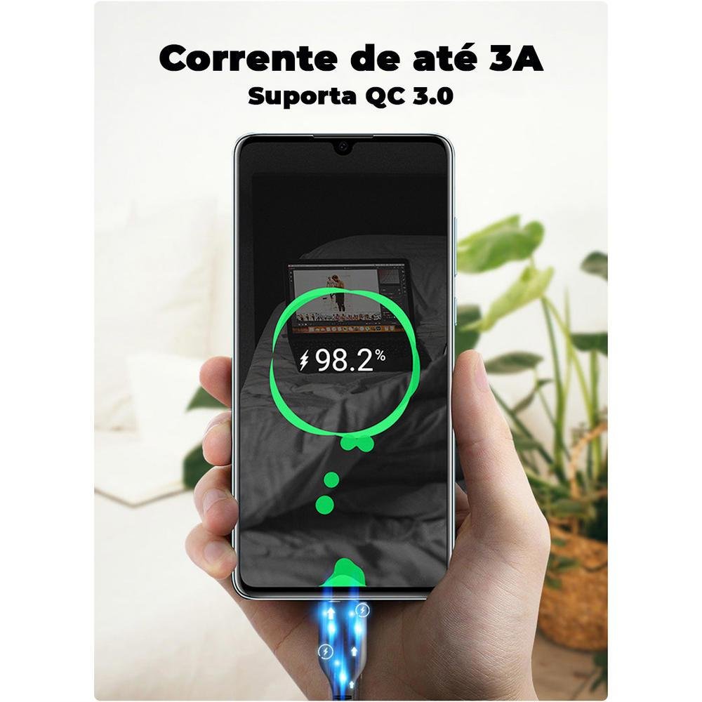 Este cabo suporta Quick Charge QC3.0/2.0 para dispositivos Tipo C, que acelera o carregamento fornecendo 5V/3A de energia de carregamento segura, 25% mais rápido que outros cabos.