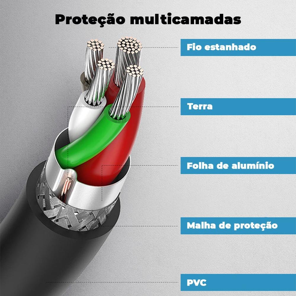 O cabo USB A 3.0 para USB C é blindado para ajudar a reduzir a interferência do sinal e melhorar o desempenho
