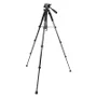 Cabeça de precisão com manípulos metálicos e contrapeso para maior controle na guinada vertical e horizontal.