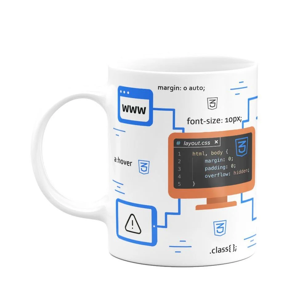 Caneca, Dev, CSS 3, Cerâmica, 325ml, Branca