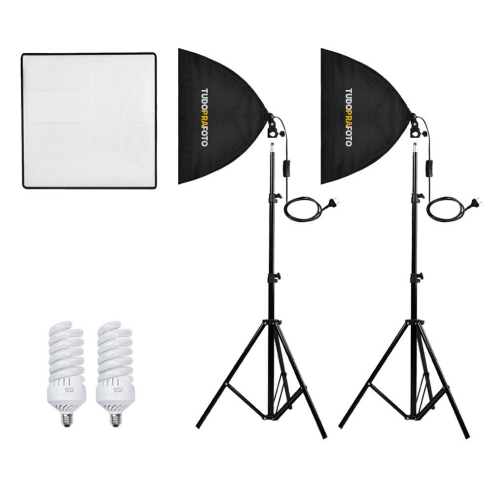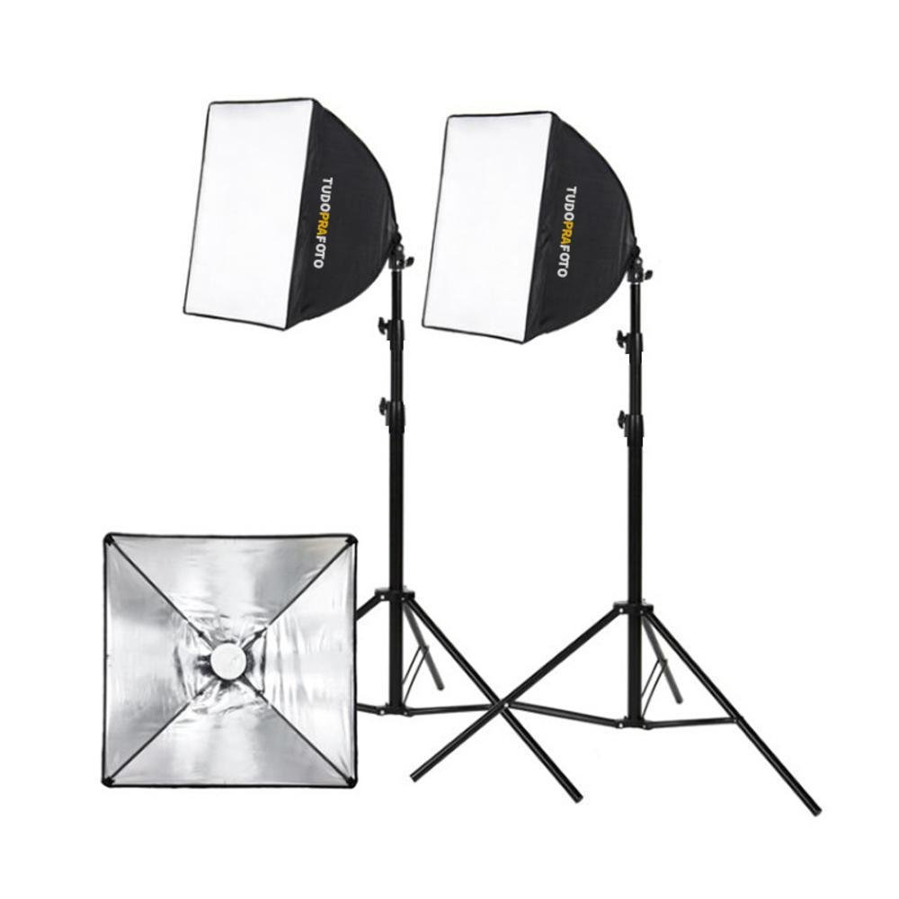Iluminação Estúdio Com Softbox 50x50, 220v + 2 Lâmpadas 5400k + 2 Tripés - Tudoprafoto