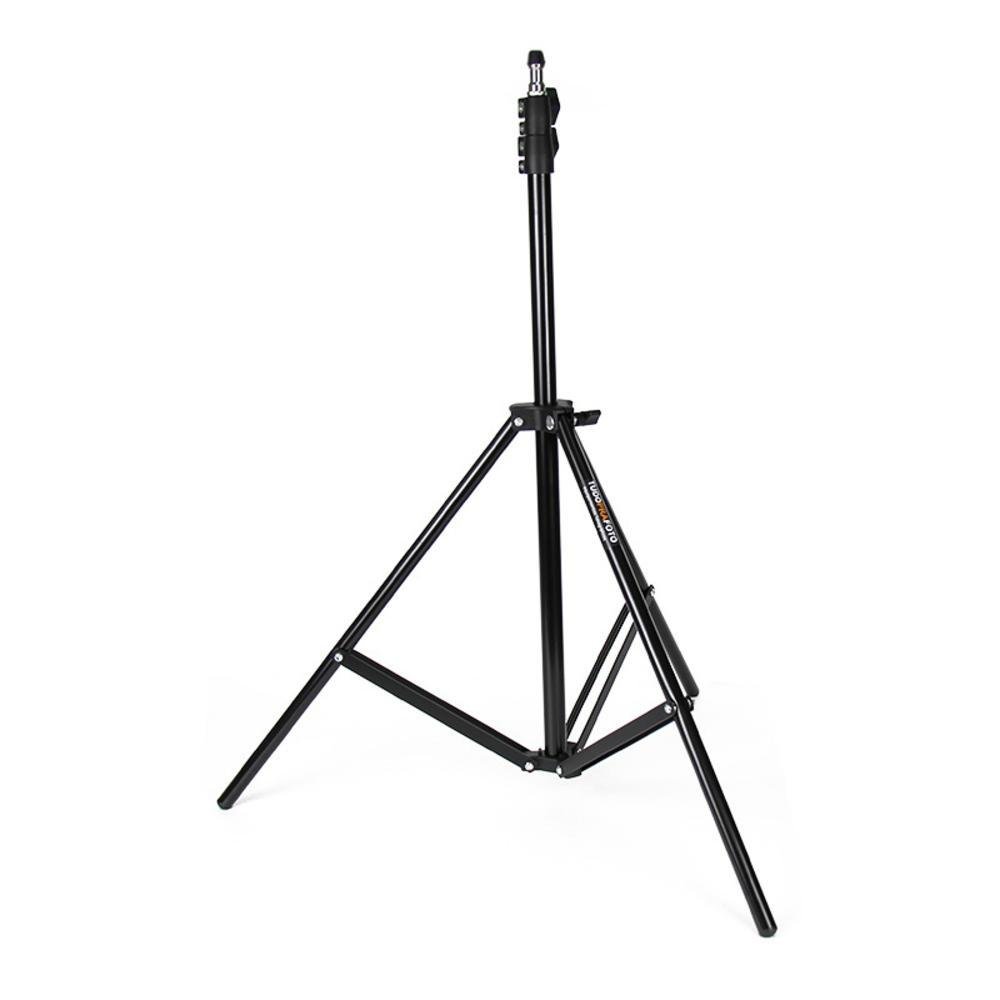 O Tripé de Iluminação 2 Metros é indicado para uso com iluminadores, softboxes e flashes, com encaixe universal com rosca padrão. Suporta até 2kg.