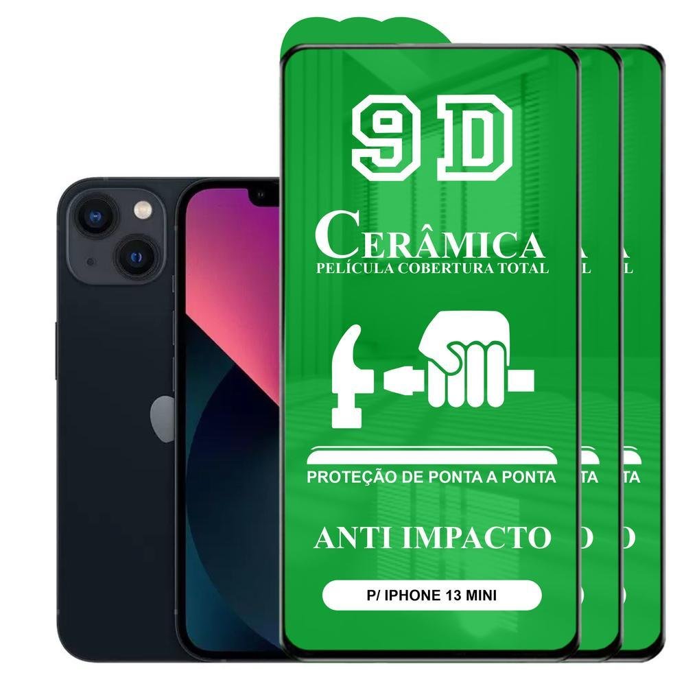 Kit promocional 3un pelicula cerâmica 9d compatível com iphone 13 mini - super resistente, melhor touch, melhor durabilidade e melhor resolução de tela! - proteção de tela com revestimento em cerâmico 9d; - uma mistura de pmma e pet. Forte elasticidade e estrutura anticolisão mantém extrema durabilidade; - o protetor de tela é o full coverage, que possui um adesivo forte para facilitar a instalação, fixa a película com firmeza para não afetar a sensibilidade da tela ao toque; - bordas pretas para proporcionar maior conforto na visão do usuário. conteúdo da embalagem: 3x películas cerâmica 9d 3x embalagens reforçadas 3x kits de limpeza 3x manuais de instalação impresso imagens ilustrativas, a película comprada será o modelo que está no título do anúncio, favor verificar atentamente. em caso de dificuldades na instalação, procure auxílio de um técnico especializado.