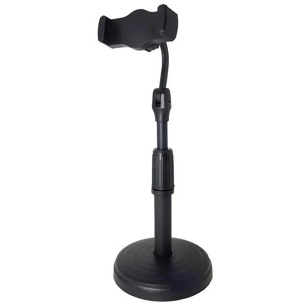 Especificações Técnicas Altura mínima: 24,5?cm Altura máxima: 36,5?cm Diâmetro da base: 11,5?cm Rotação: 360 graus contínuos Peso aproximado: 230–250 gramas Compatibilidade: Smartphones com ou sem capa