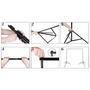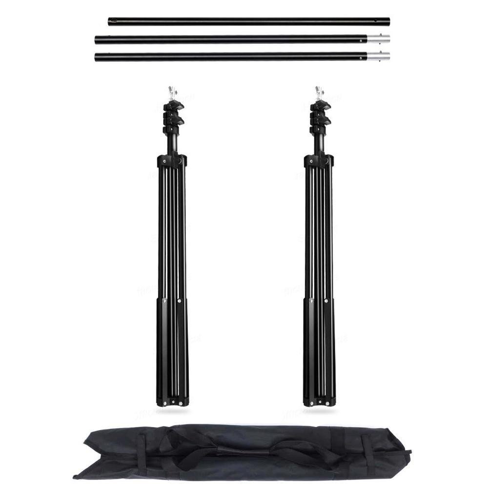 Suporte de fundo infinito fotográfico 3 barras suporte de sustentação para fundos fotográficos de estúdio, com três barras desmontáveis. Compatível com fundos do tipo rolo e tecido. para utilizar o suporte com tecidos, pode ser necessário a utilização de garras do tipo prendedores (não inclusos) para fixá-lo nas barras. As barras chegam até 2,25 metros de comprimento, ideal para o uso com fundos fotográficos de até 2 metros, e os tripés chegam até 2 metros de altura. especificações do suporte de fundo infinito fotográfico 3 barras: comprimento das barras (total): 2,25 metros. Altura máxima do tripé: 2 metros. Material: metal. Modelo: desmontável. itens inclusos: 2x tripés de iluminação 2 metros. 3x barras telescópicas. 1x bolsa de transporte.