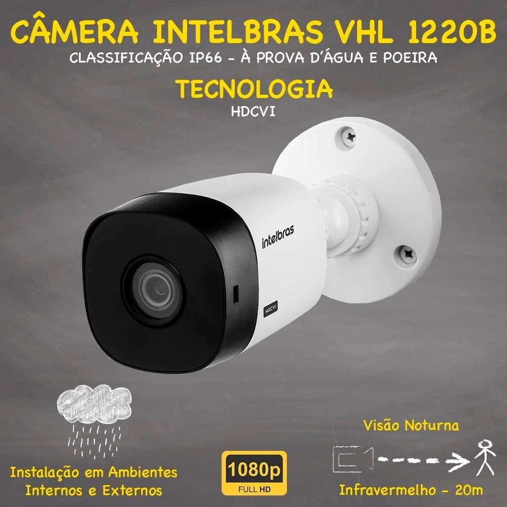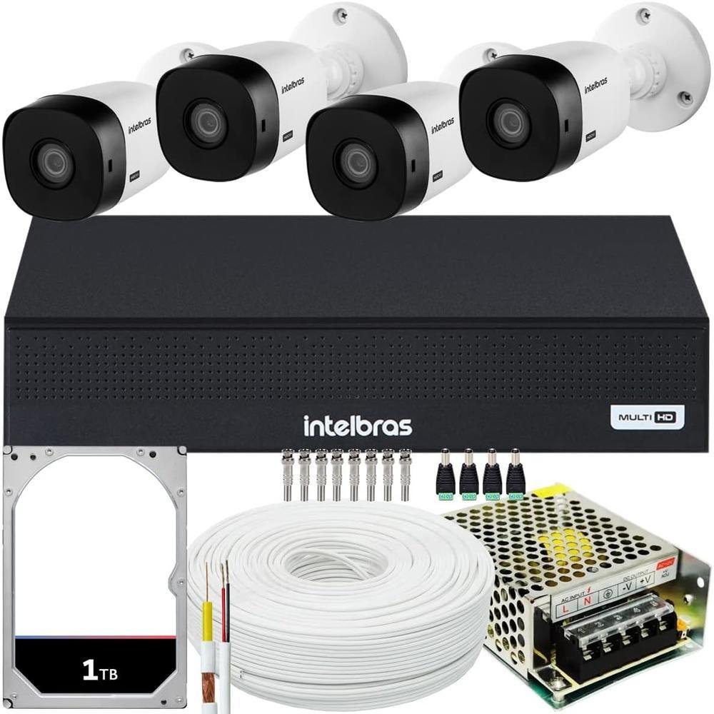 It cftv de alta definição intelbras full hd com 4 câmeras acesso via smartphone e computador conteúdo 01 dvr intelbras mhdx 1008-c 4x1 de 08 canais 04 câmeras intelbras vhl 1220b full hd 01 hd de 1tb 3,5' interno sata 7200rpm 01 fonte eletrônica chaveada 12v 05a bivolt 100 metros de cabo coaxial flexível 4mm 80% de malha 08 conectores bnc antirruído parafuso e mola 04 conectores p4 macho com borne 01 mouse usb características dvr de 08 canais intelbras mhdx 1008-c - modelo: mhdx 1008-c. - tecnologias: multi hd (hdcvi + hdtvi + ahd + ip). - quantidade de canais: 08 canais bnc + 2 canais ip ou 10 canais ip no modo nvr. - resolução de visualização: 1080p / 720p / 960h / d1 / cif. - resolução de gravação: 1080p lite/ 720p / 960h / d1 / cif. - compressão de vídeo: h.265+, h.265, h.264+, h.264h, h.264, h.264b. - conexão de rede: compatível com redes wi-fi através de adaptador usb (vendido separadamente) e cabo rj45 (10/100 m). - saídas de vídeo: vga e hdmi. - inteligência de vídeo: detecção inteligente de pessoas e/ou veículos, detecção de movimento, perda de vídeo e mascaramento. - modo de gravação: suporta 1 hd sata interno de até 18 tb. - acesso remoto: nuvem e ddns sem custo. - aplicativo de acesso remoto: intelbras isic, guardian. Câmera de alta definição intelbras vhl 1220 bullet - fabricante: intelbras. - modelo: vhl 1220 b. - tecnologia: hdcvi. - resolução de gravação / visualização: 1080p (2mp). - formato: bullet. - lente: 3.6 mm. - sensor: 1/2.7' 2 megapixels cmos. - ângulo de visão horizontal: 96°. - ângulo de visão vertical: 51°. - conectores: bnc fêmea e p4 fêmea. - case: plástico. - proteção: ip66 (proteção contra poeira e chuva) e antivandalismo. - infravermelho: sim - 20 metros. Garantia de 01 ano contra defeitos de fabricação para todo o kit, exceto o hd que possui garantia de 90 dias.