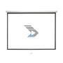 Também chamada de tela para projetor, nosso produto possui estojo metálico, e sua fixação pode ser feita no teto ou na parede.