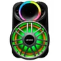 Conta ainda com alto falantes com led e alça para facilitar o transporte.