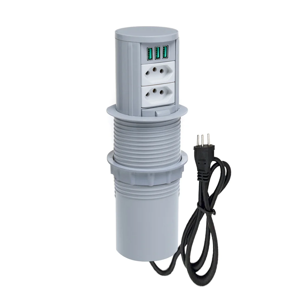 A connect caixa tomada desenvolveu esta torre de tomada que é uma opção compacta para levar acessibilidade elétrica para onde você precisar. Fácil manuseio, com apenas um toque em sua tampa para destravá-lo, basta puxá-lo para cima, após utilizá-lo, desconecte os plugs em uso, basta empurrá-lo para baixo até travá-lo e o corpo fica totalmente escondido dentro da bancada ou de onde estiver inserido. especificações: marca: connect caixa tomada cores disponíveis: branco, cinza e preto voltagem: 127v/250v (bivolt) conteúdo da embalagem: - 1 torre de tomada totem slim manual - 2 tomadas 20a - 3 usb 5.2a - 1 cabo de alimentação com 1,5m de comprimento (é só plugar na tomada e utilizar) - dimensões gerais: dimensional externo: diâmetro 97 mm x 181 mm dimensional de corte: diâmetro 80 mm x 179 mm (faça a furação somente com a peça em mãos) aplicação: totem para bancadas e armários aéreos de cozinha, sala de estar, estofados, móveis sob medida, home theater, mesas de reunião, salas de conferência e treinamento, painel de tv, showrooms, estação de trabalho e escritórios em geral. utilização: residencial e corporativo. garantia: o produto tem garantia total de 12 meses, sendo 3 meses pelo código de defesa do consumidor (cdc) + 9 meses pela fábrica.