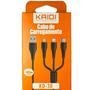 Cabo De Dados Kaidi 3 X 1 Micro USB, Tipo C e Lightning 3a, 1 Metro